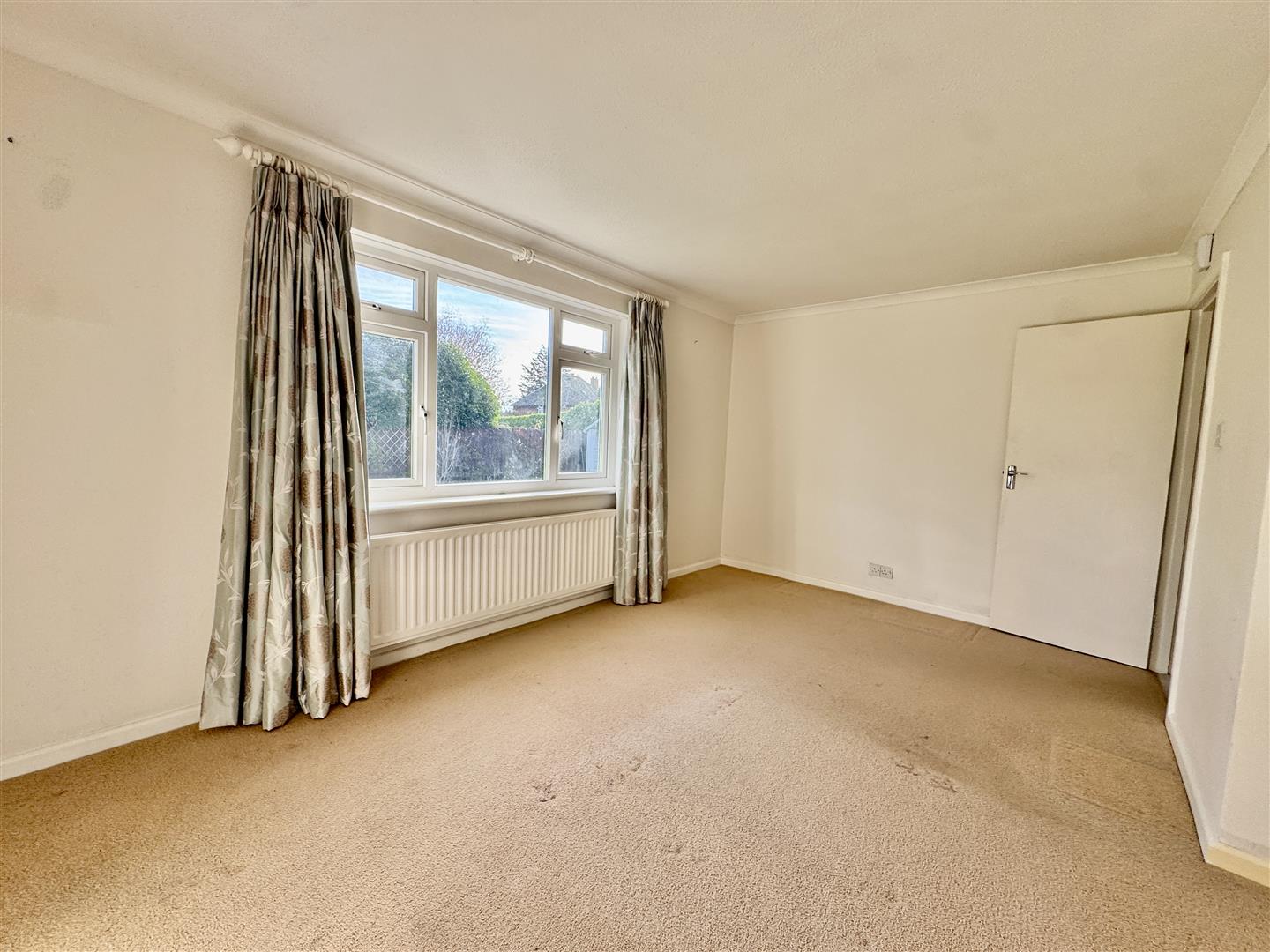 A large double bedroom with built-in wardrobes and a window overlooking the front garden.