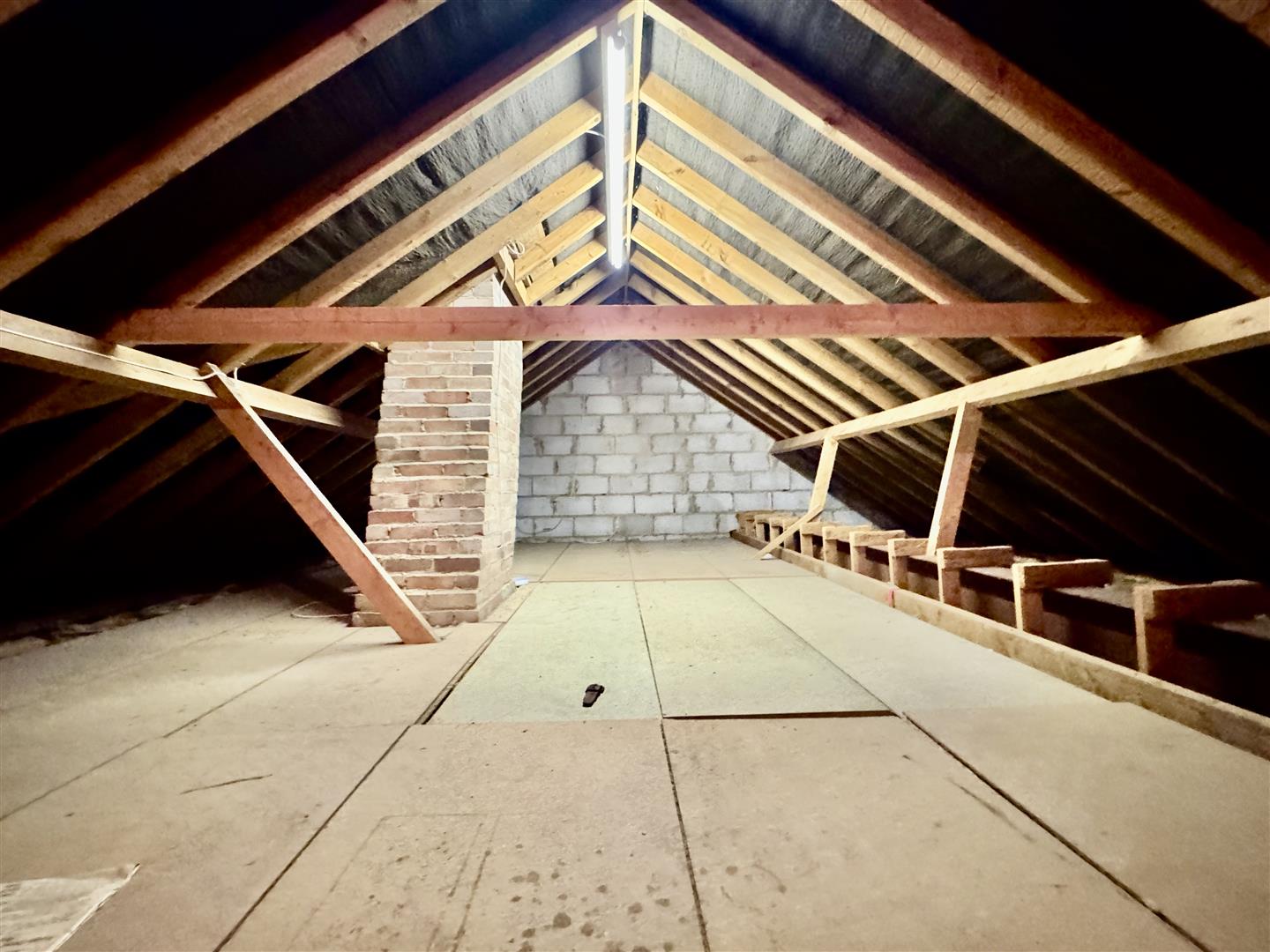 Accessed via two steps leading to a composite front door with side light, opening into a wide hallway with an airing cupboard and loft hatch to a large, boarded loft space.