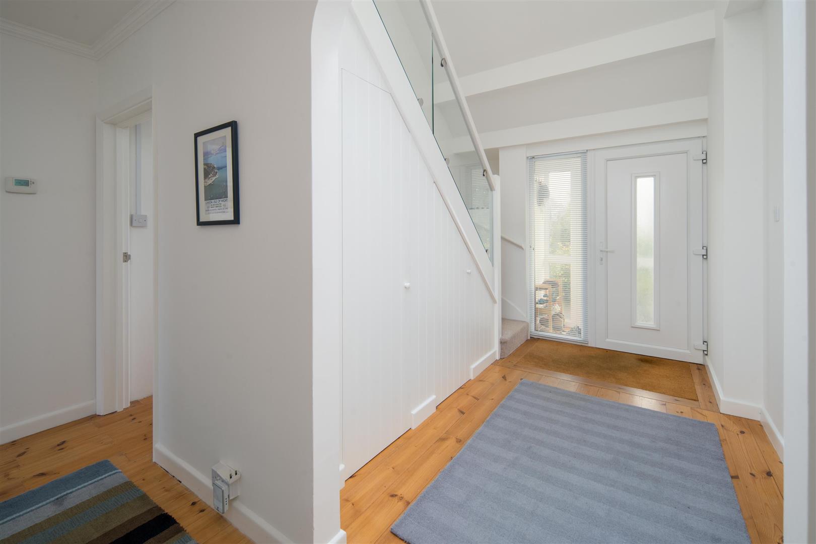 2 Meadow End is perfectly nestled on a generous plot behind a mature and evergreen front garden, comprising a range of herbaceous shrubs and hedging. There is ample off-road parking and a small front lawn and access on both sides leads to a fully enclosed rear garden with a westerly aspect and a large sandstone terrace. The garden has been designed to offer year-round colour, interest, and privacy, featuring two large olive trees and a jasmine-clad archway with paving down the centre. A small garden shed occupies one corner, along with a clippings area. There is gated side access, as well as a small store tucked away on the path along the southern elevation.