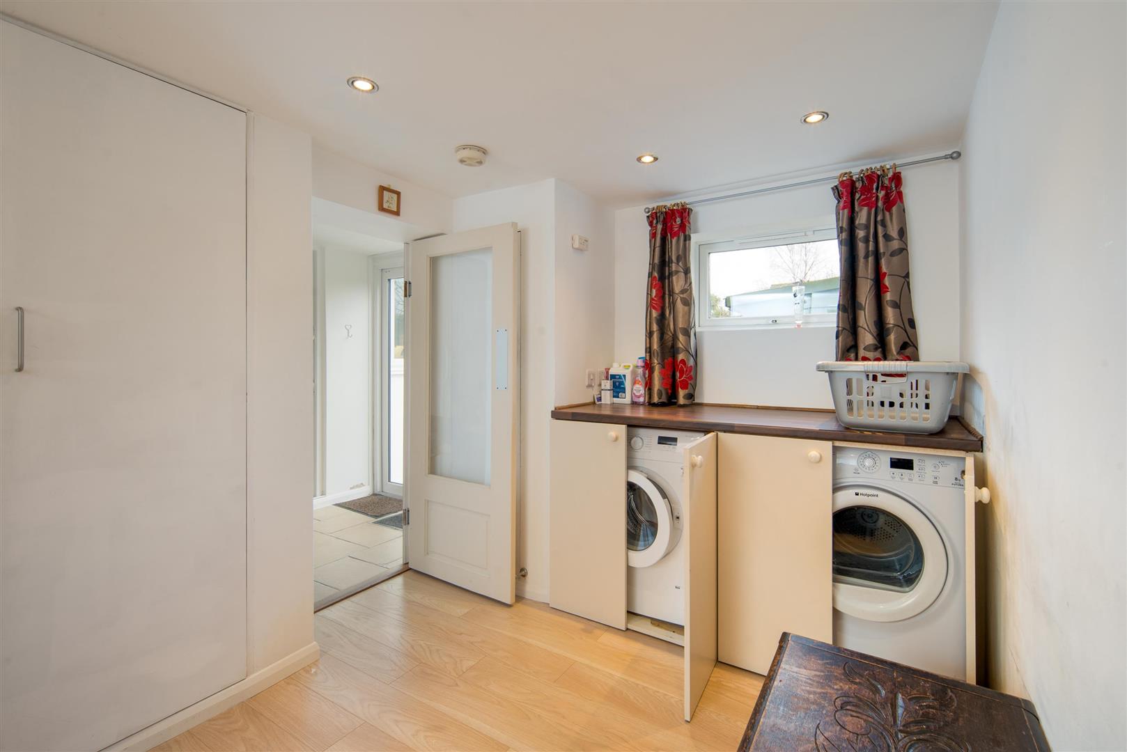A cupboard houses plumbing for a washing machine and tumble dryer, along with the wall-mounted gas boiler and consumer unit. This space could equally serve as ancillary accommodation, a home office, studio or gym.