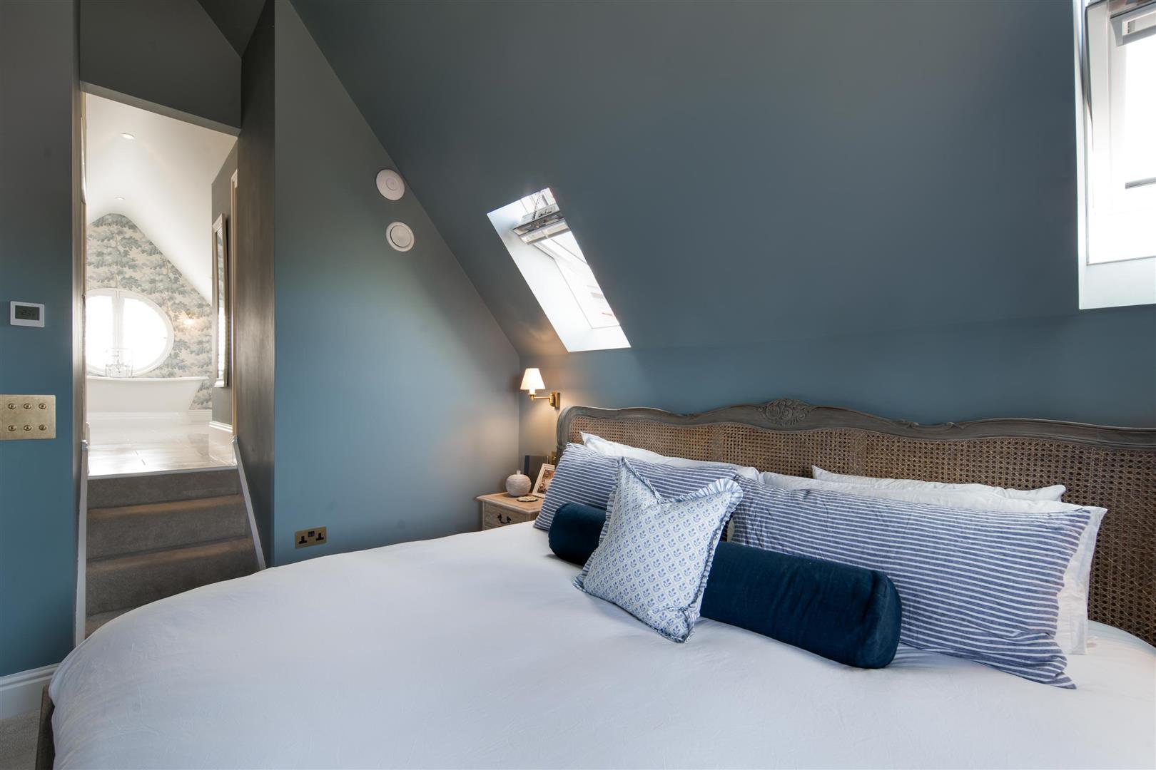Guest Suite – 51m2 (548sqft) With its own entrance, this luxurious guest bedroom with ensuite shower room features a sea glimpse and free-standing roll-top bath making it an ideal getaway for visitors or overspill accommodation.