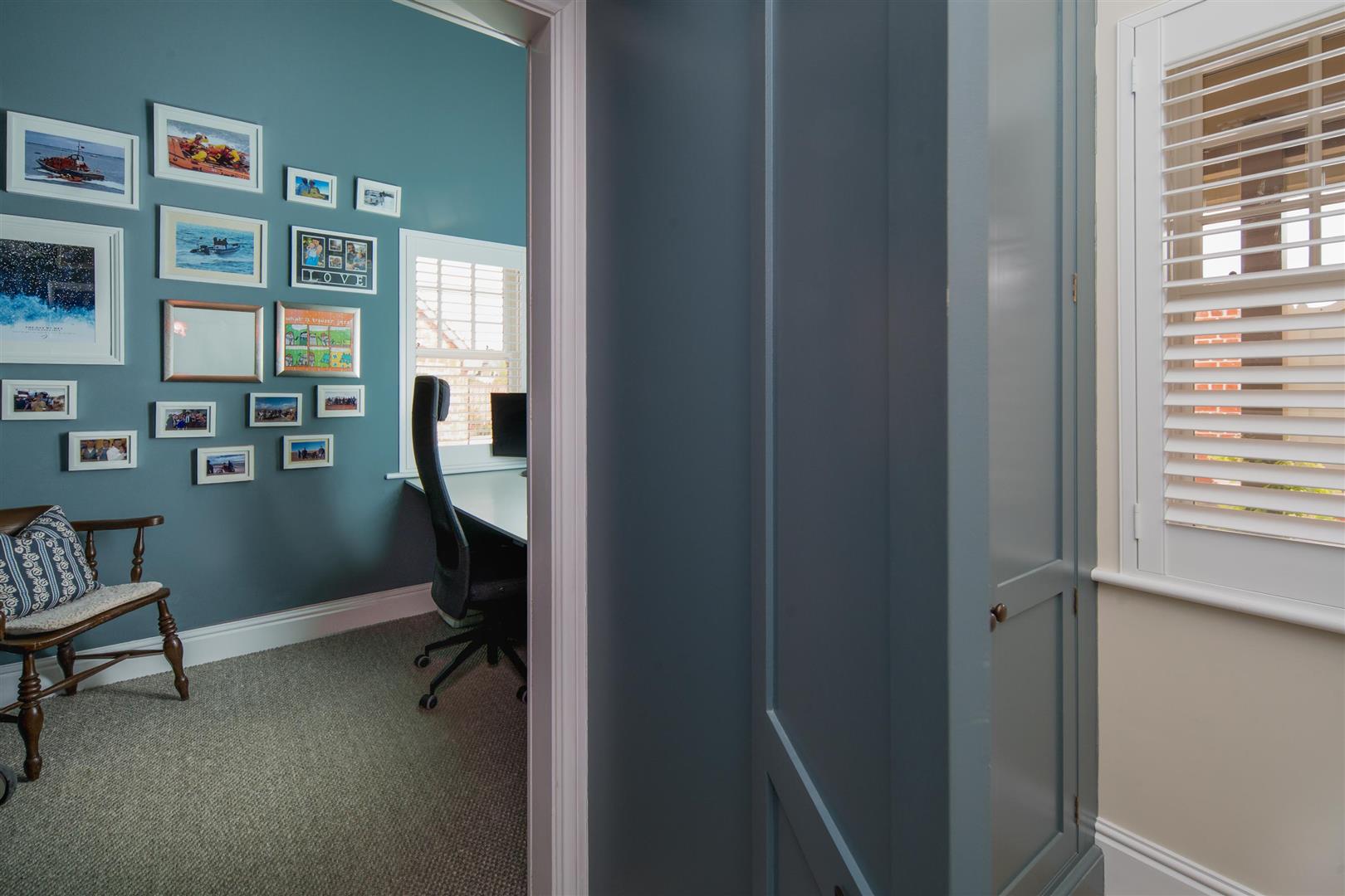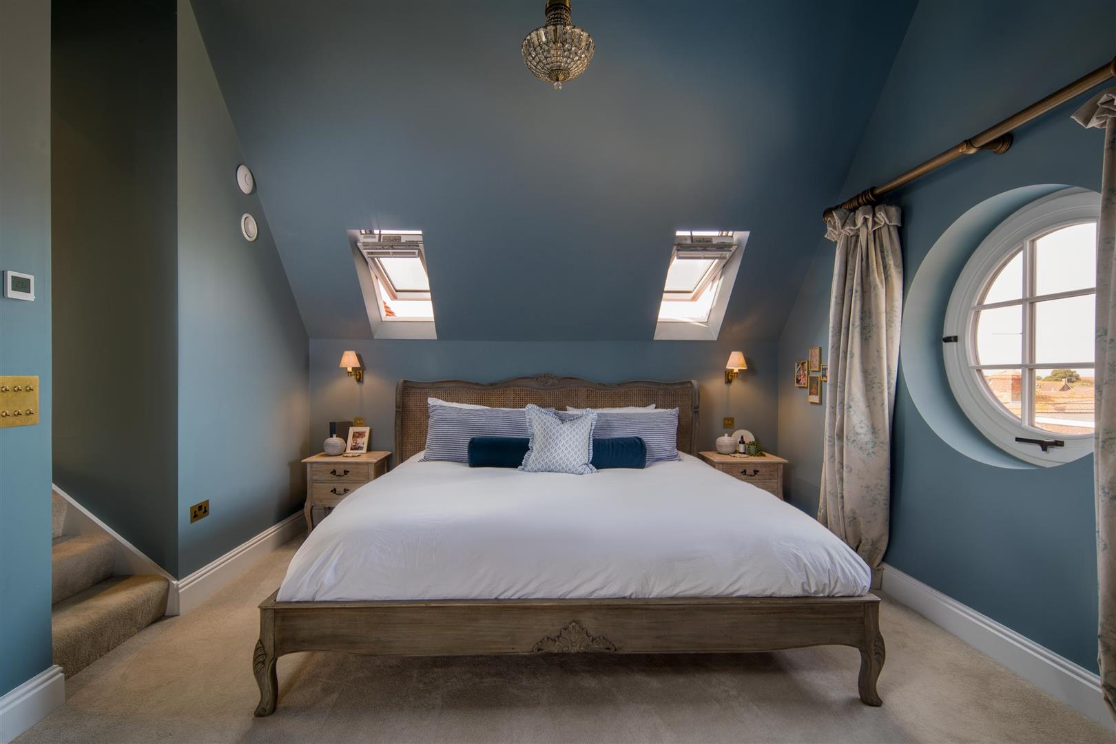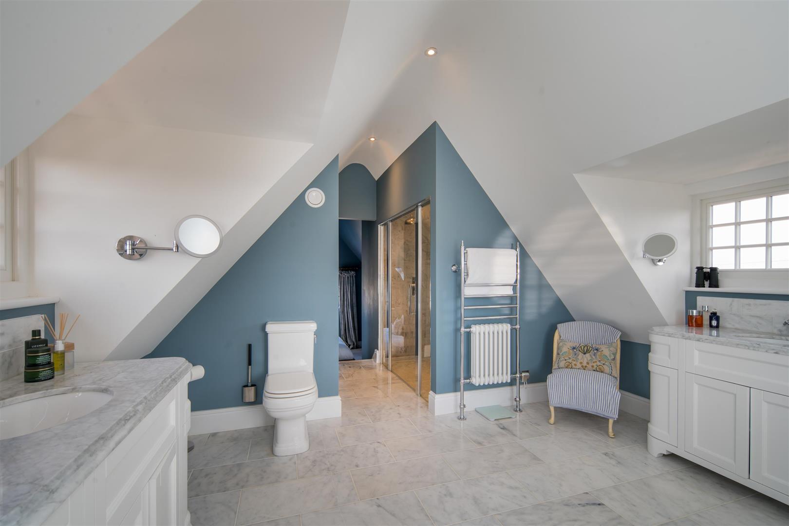 The Principal Suite spans the entire top floor with far reaching views towards the Solent approaches, Bembridge Ledge, Ledge Buoy and West Princessa Buoy. Two Dressing Rooms serve an impressive en suite Bathroom, marble tiling, a double shower, large skirted roll top bath, and a pair of Lusso marble topped vanity units to each side of the light filled triple aspect space.