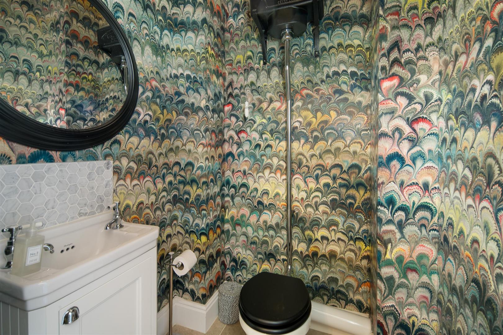 A welcoming reception hall introduces the home’s craftsmanship with classic deep skirting, oak doors and a feature staircase culminating in a galleried landing lit by a statement Jim Lawrence chandelier. Formal rooms include a Drawing Room with Morso two-sided wood burning stove and deep pile Lambswool carpet, an east facing Morning Room orientated to capture the first light and a Dining Hall capable of seating 20. A TV room / Family Snug is cleverly concealed behind pocket doors and furthermore, a tucked away Home Office and well-equipped Boot & Utility Rooms and a Cloakroom / W.C.