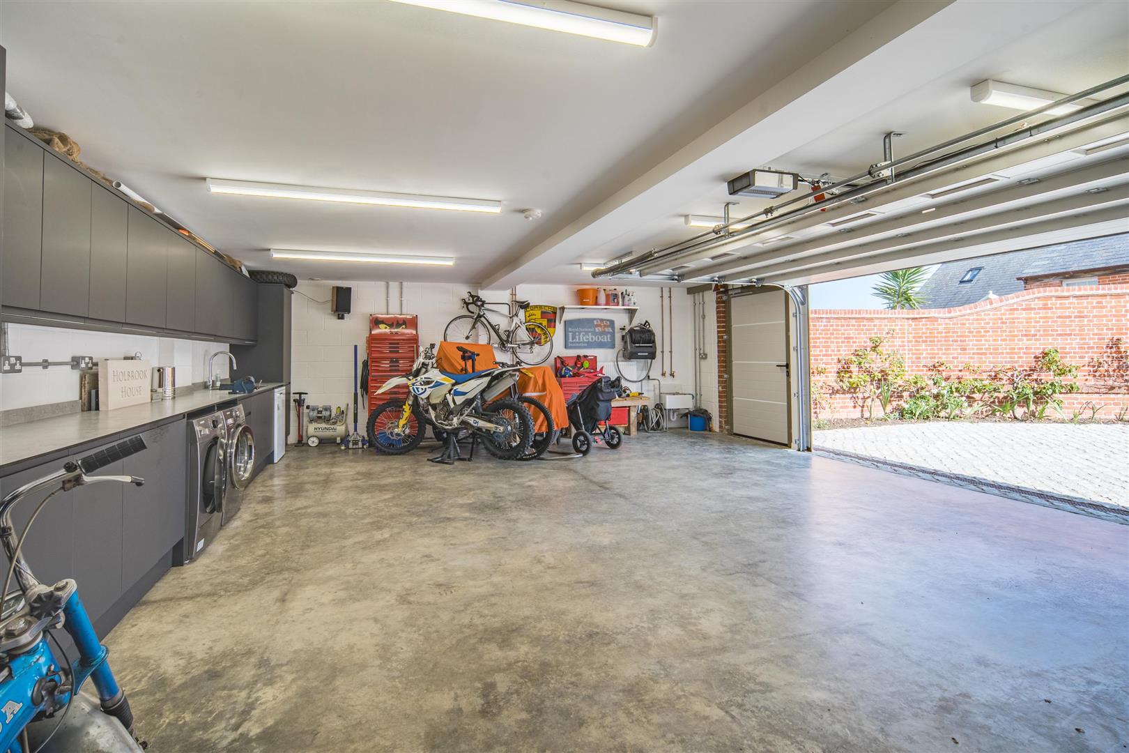 Triple Garage – 62m2 (667sqft) A superb, detached garage offering incredible versatile storage space with deep bays (8.5m by 6.8m – much deeper than standard), polished concrete floor, fitted “pit garage” workbench, power wash station, plumbing for washing machine/tumble dryer, ideal for sports or sailing gear. Insulated sectional garage door and separate pedestrian door. Jack and Jill W.C.