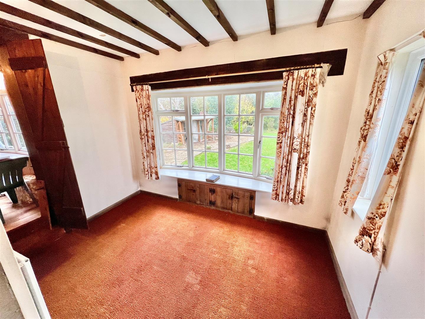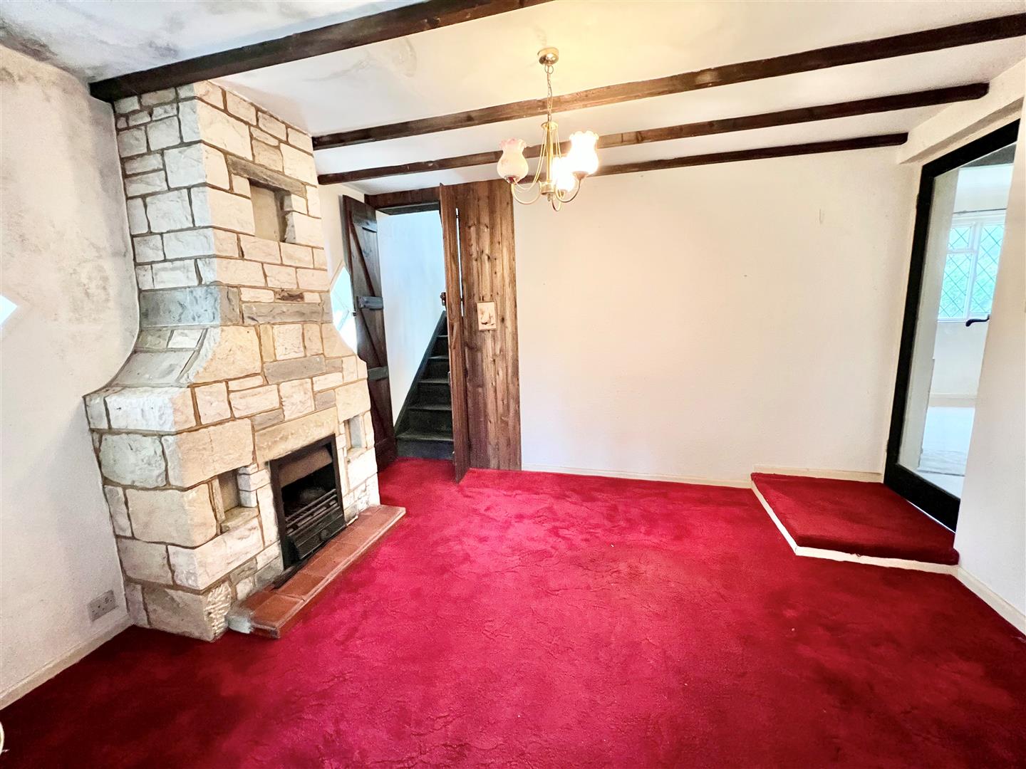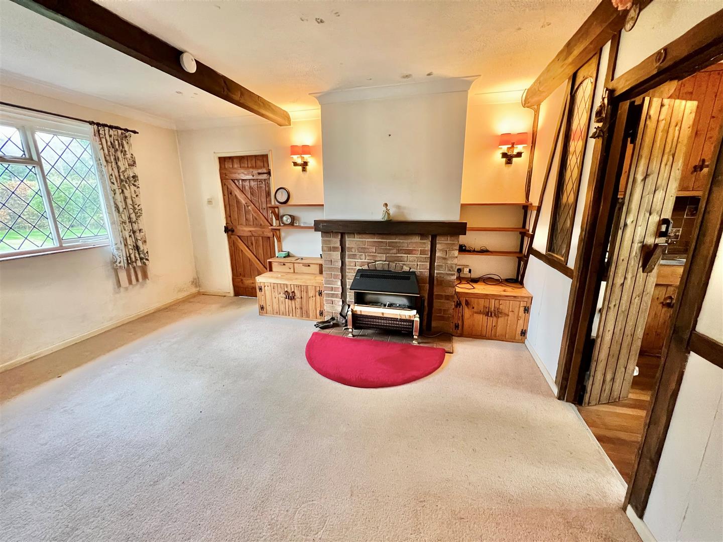 A pleasant room with an outlook to the front and opening through to the kitchen. A fireplace provides the main focal point with low level storage cupboards to either side.