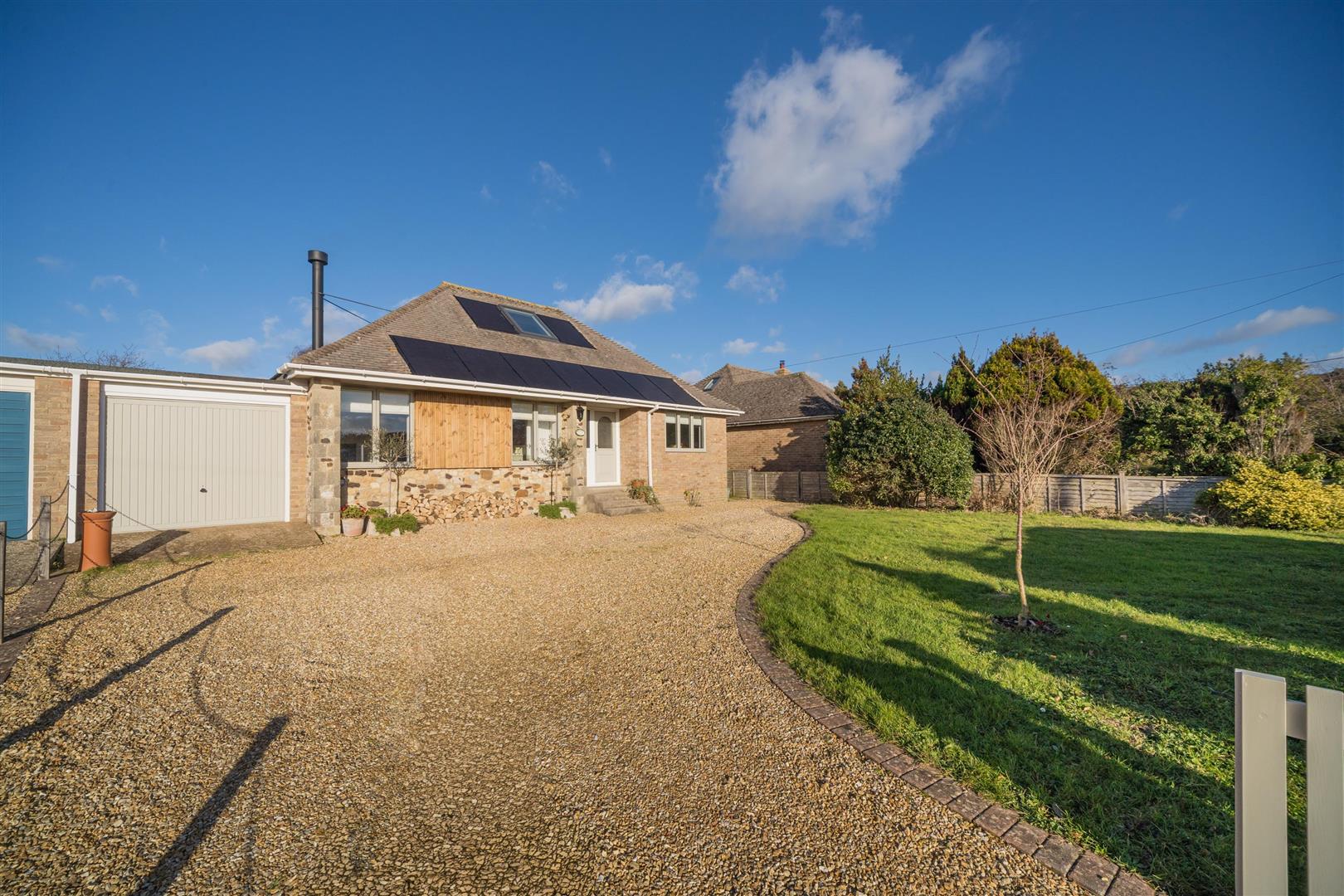 This extended, and well presented detached bungalow offers flexible accommodation over two floors with recent modernisation focusing on creating a stylish home with the advantages of some energy efficient upgrades. On entering the ground floor via open covered porch you step into a generous hall with bespoke stairs to recently completed roof conversion and access to two ground floor double bedrooms and a new bath and shower room. Moving further into the property on the ground floor there s a living room with feature wood burning stove and an opening leads you into the rear extension which offers a luxury kitchen with matching central island and a generous space with triple sliding doors to rear garden and ample room for a full sized table and chairs and a further seating area as desired. The first floor is now a double bedroom suite with ensuite shower room and large Velux window providing a bright and airy space. Moving outside, there is parking for several vehicles with gardens to both front and rear.
