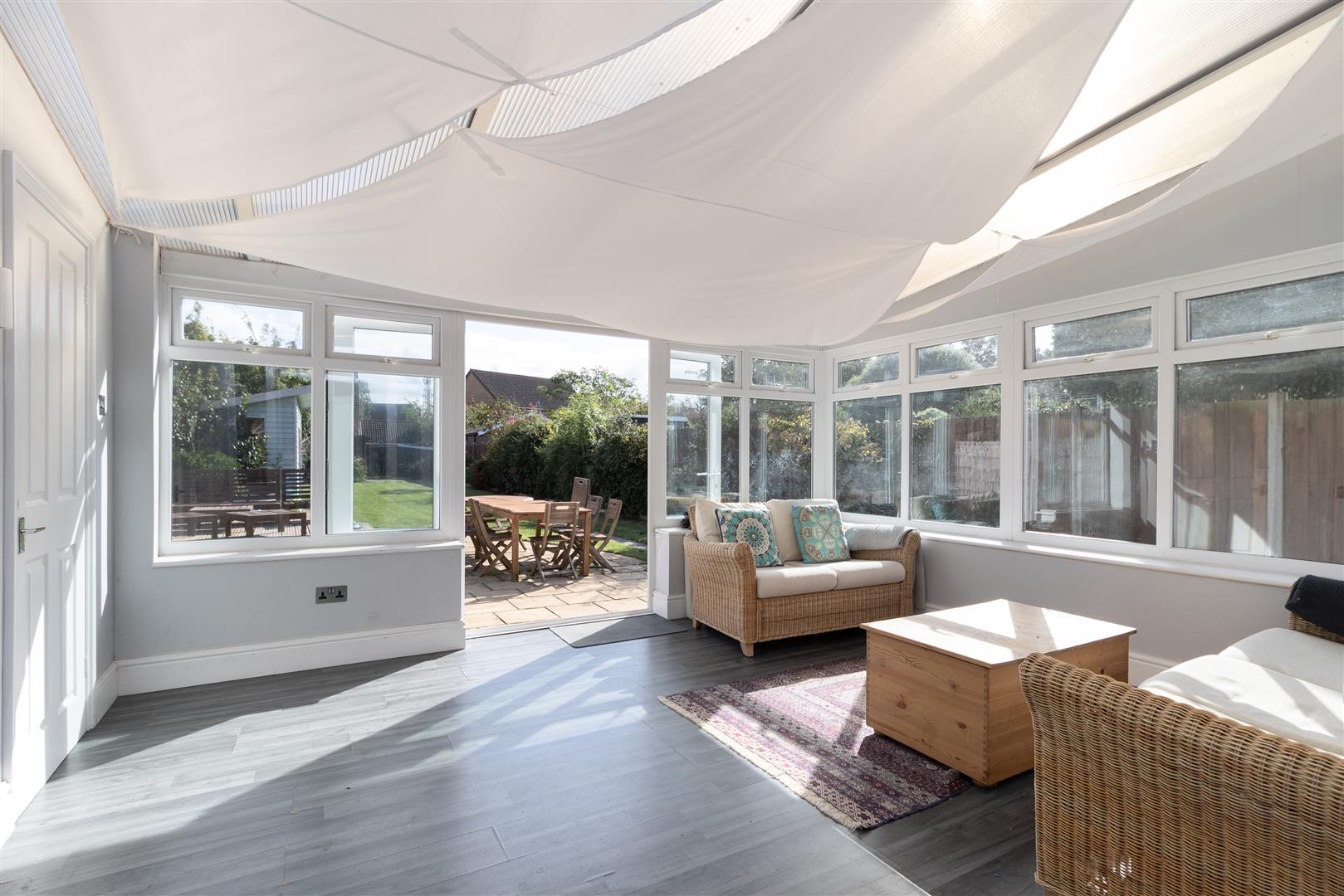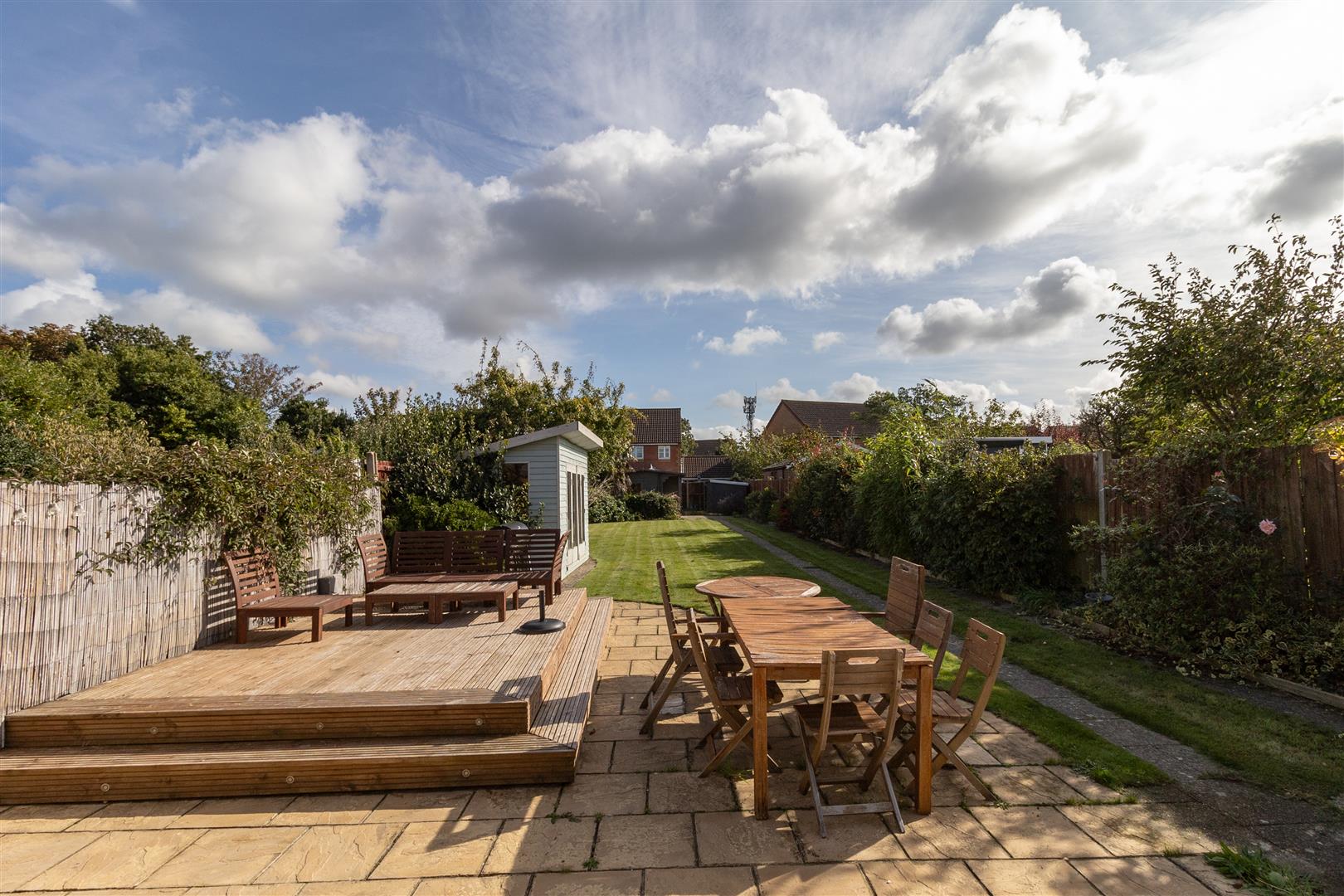 OUTSIDE A paved driveway provides off road parking for at least two large cars to the side of the property with an additional gravelled area to the front of the house. A gated access to the side of the house leads to an extension of the drive providing further potential parking / boat storage and access to the great south facing rear garden which is bordered by hedging and fencing and laid mainly to lawn with a large paved and decked al fresco seating and dining area. There is a summer house and garden storage chalet.