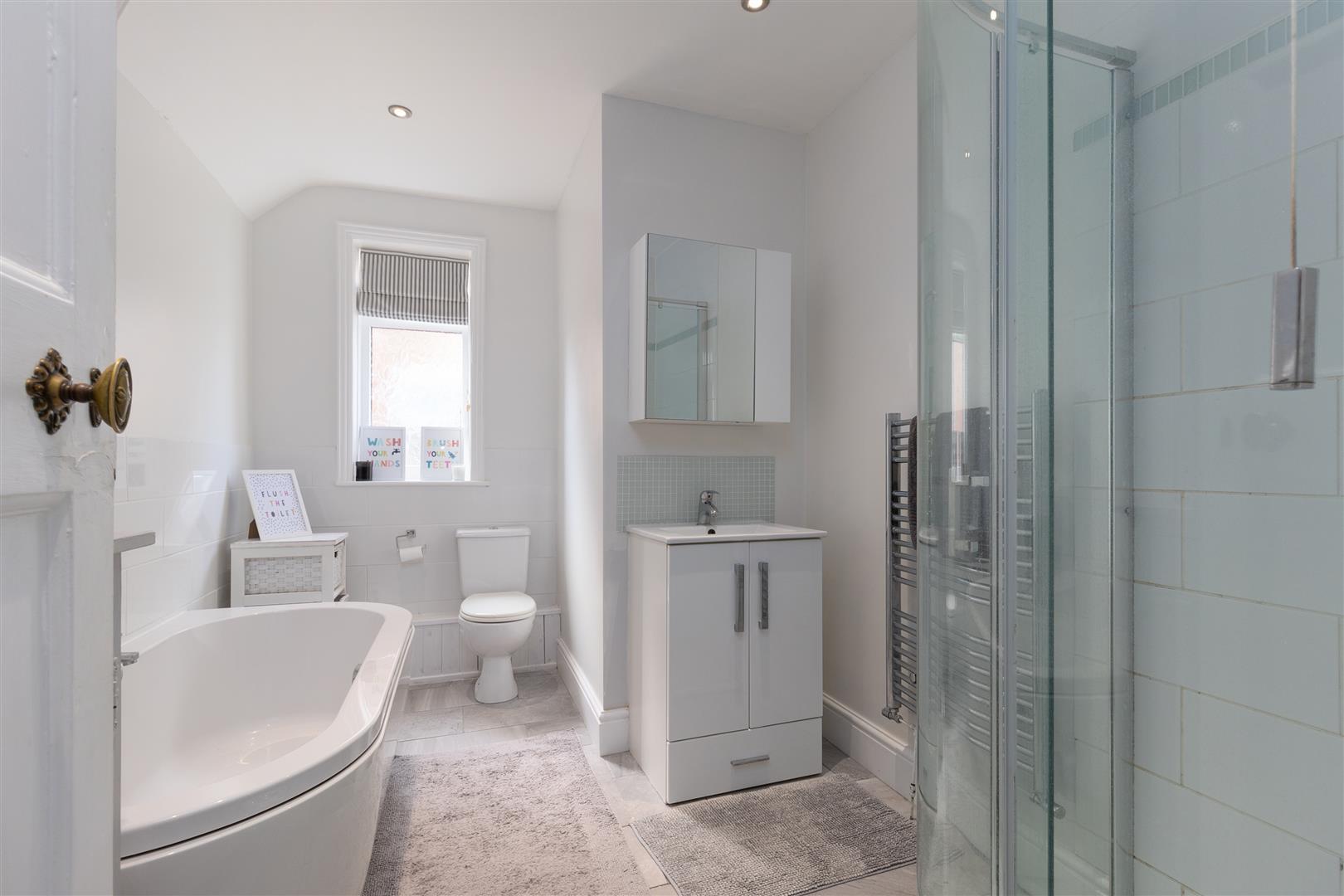FAMILY BATHROOM Bath, separate shower, WC, basin with vanity unit beneath and heated towel rail. Airing cupboard.