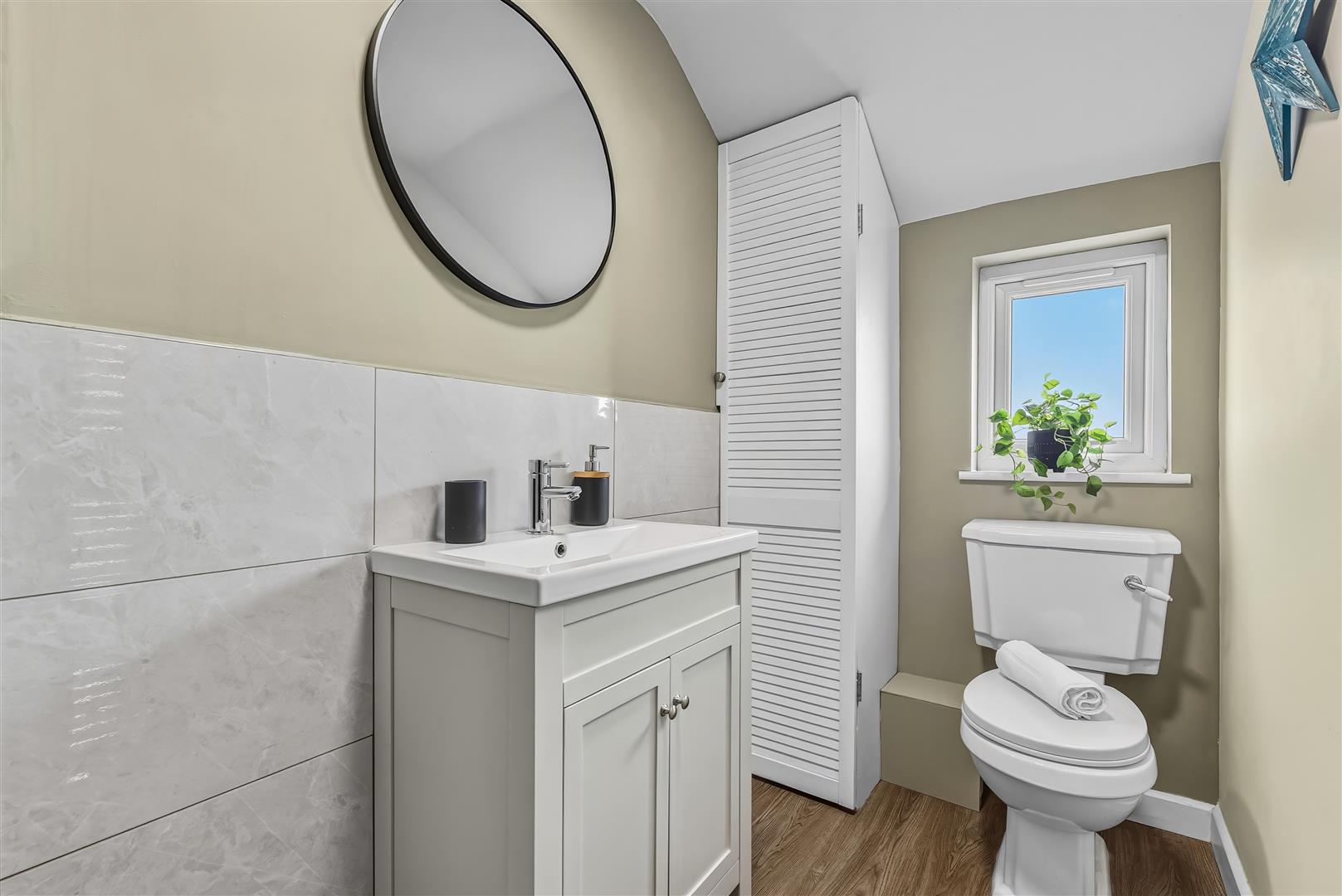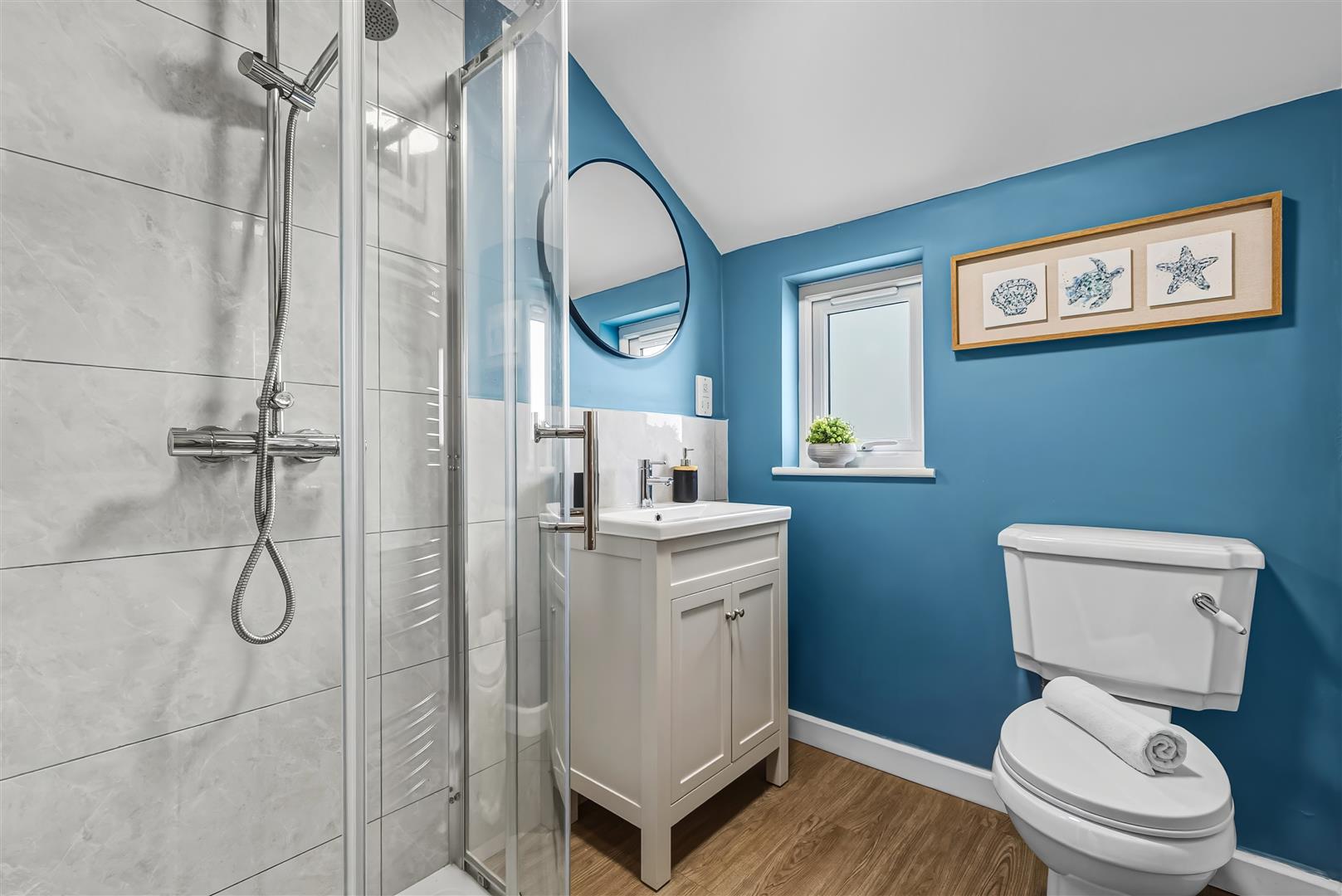 SHOWER ROOM 2 Shower unit, sink set on vanity unit, WC, heated towel rail.