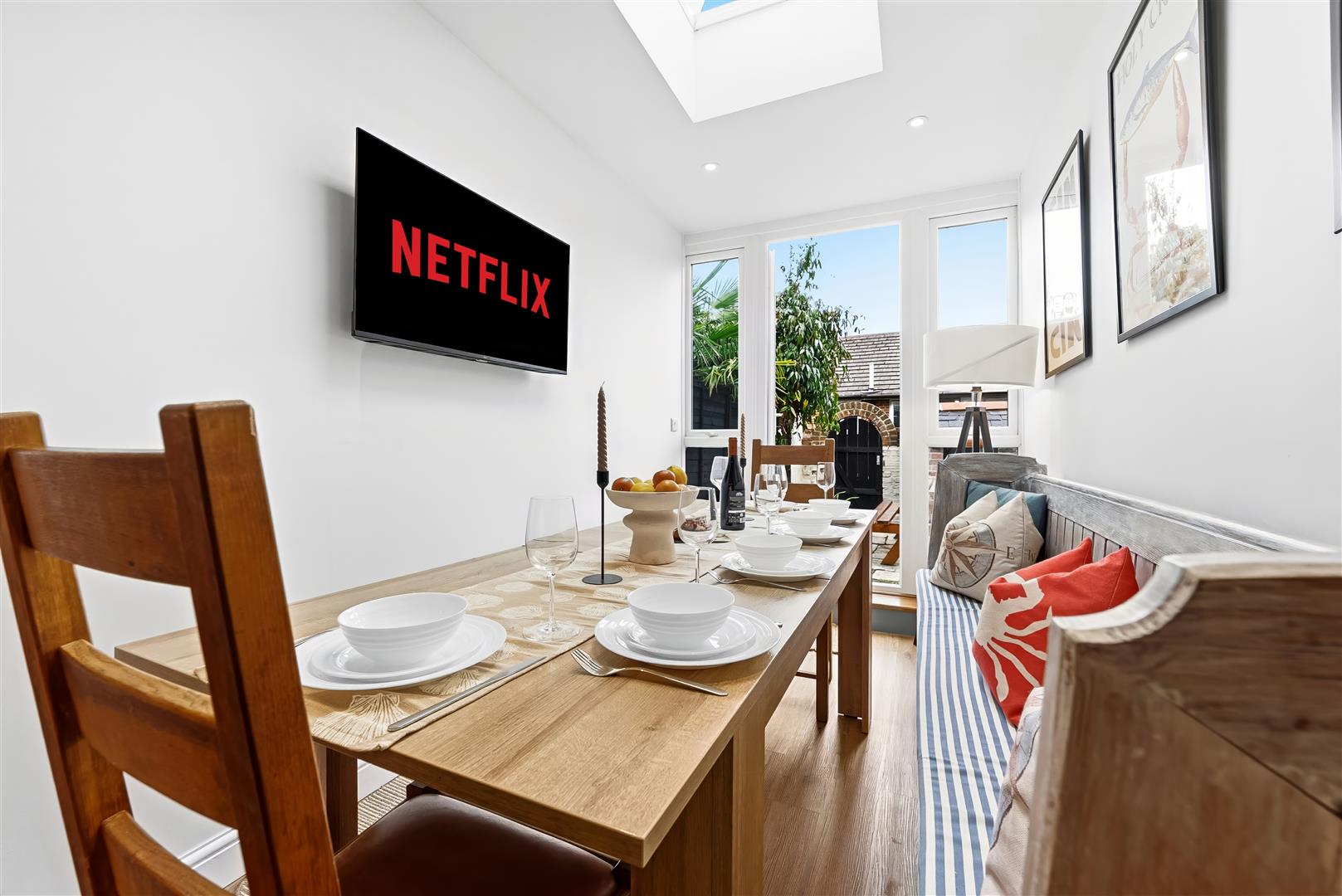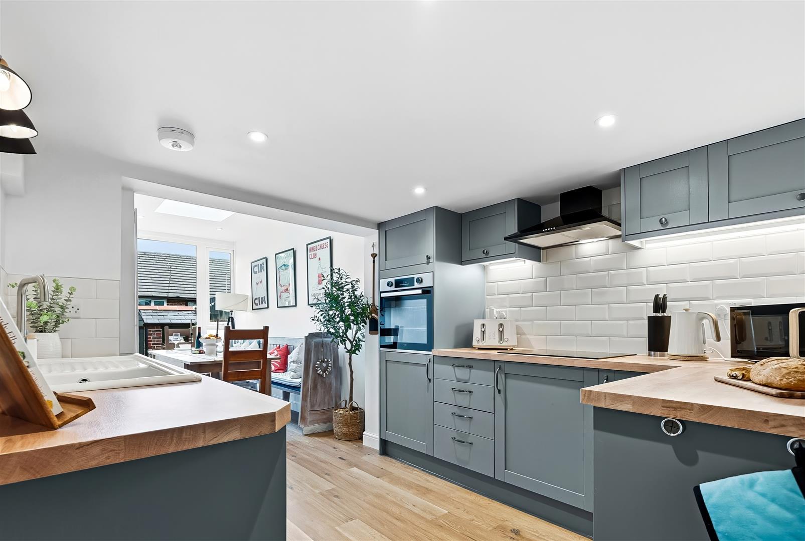 KITCHEN/ DINING ROOM Incorporating a recent extension featuring a sky lantern with glazed door providing access and outlook onto the rear low maintenance garden. Recently installed kitchen with integral appliances including eye level oven, induction hob with extractor over, dishwasher, washing machine, fridge freezer and ceramic sink with mixer tap.