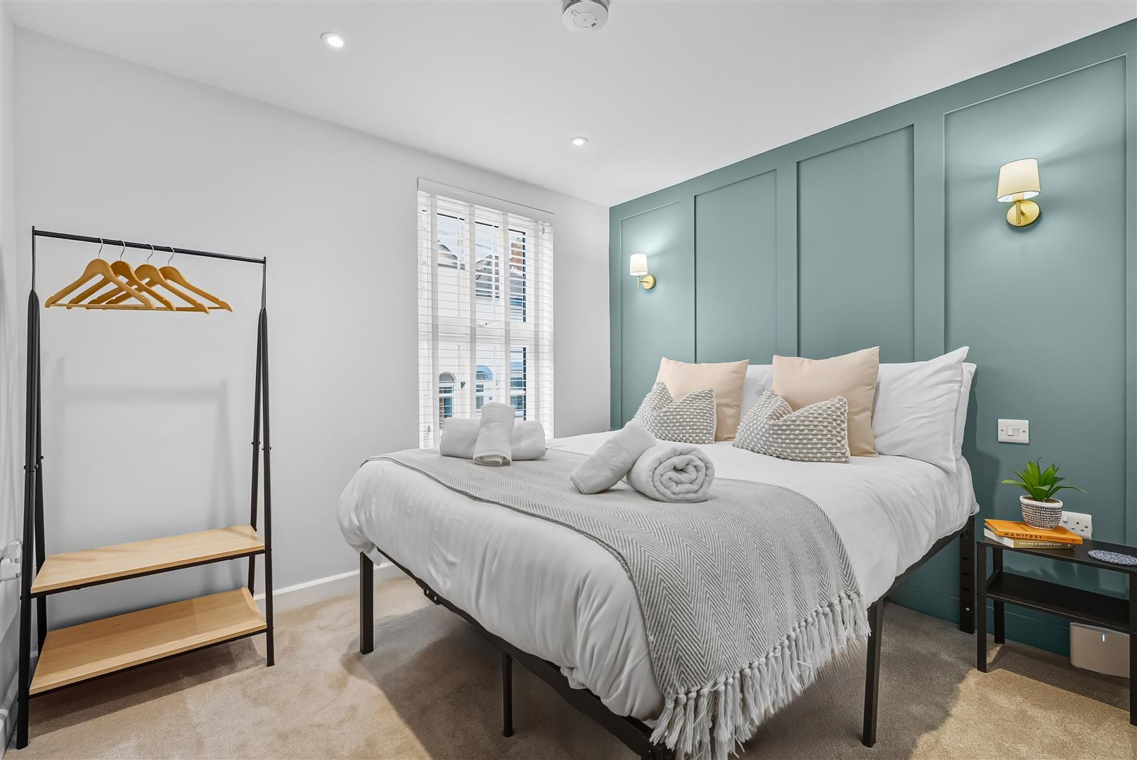 OUTSIDE The property is approached along popular York Street with a small rear garden featuring natural stone paved terrace forming an attractive alfresco seating and dining area. Steps lead down to a pedestrian gate and small brick-built storeroom. Convenient gated rear access.