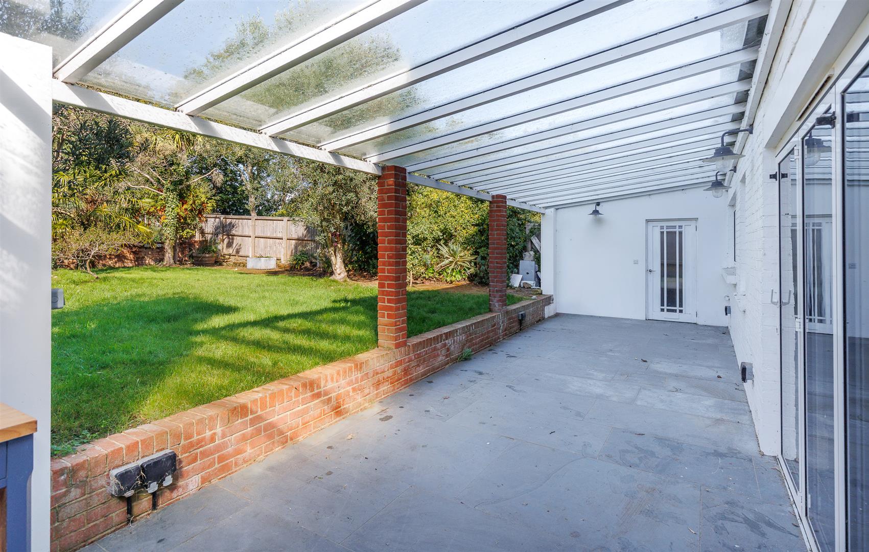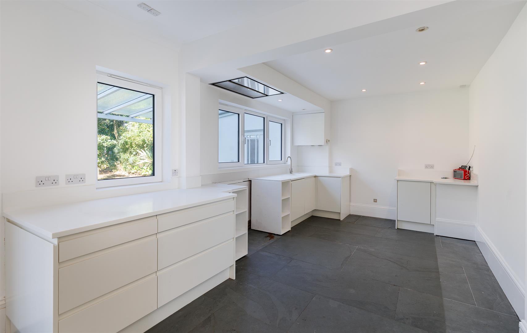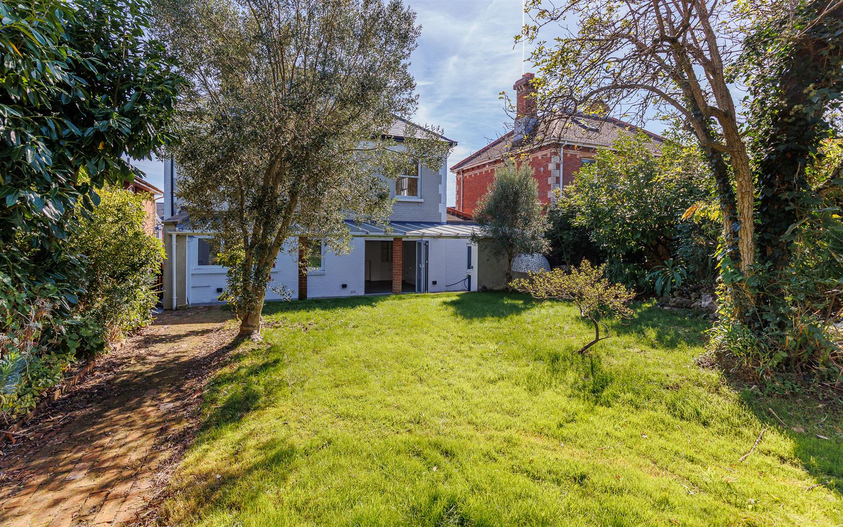 This substantial family home retaining period features has light well-proportioned principal rooms with accommodation over three storeys with sea views from the top floor. An impressive open-plan kitchen /dining room has bifold doors opening to a large covered terrace with an outdoor kitchen forming a superb entertaining space which opens to the garden. There are two good reception rooms to the front of the house and on the upper floors are five double bedrooms and three bath/ shower rooms. The wonderful rear garden has lawns, a variety of mature trees and shrubs and extends to an extensive paved terrace adjacent to a summer house. To the front of the property is a driveway and gravelled area with ample parking. There is UPVC double gazing throughout the property.