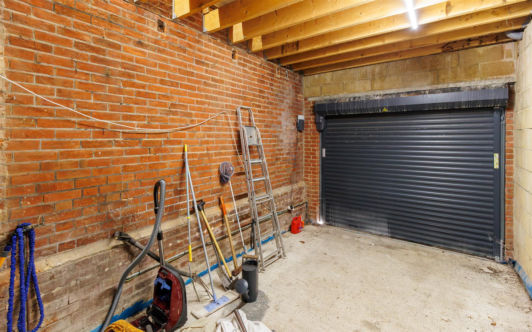 A gated driveway leads to an extensive gravelled parking area with a SINGLE INTEGRAL GARAGE with electrically operated roller shutter door, mezzanine storage and water tap.