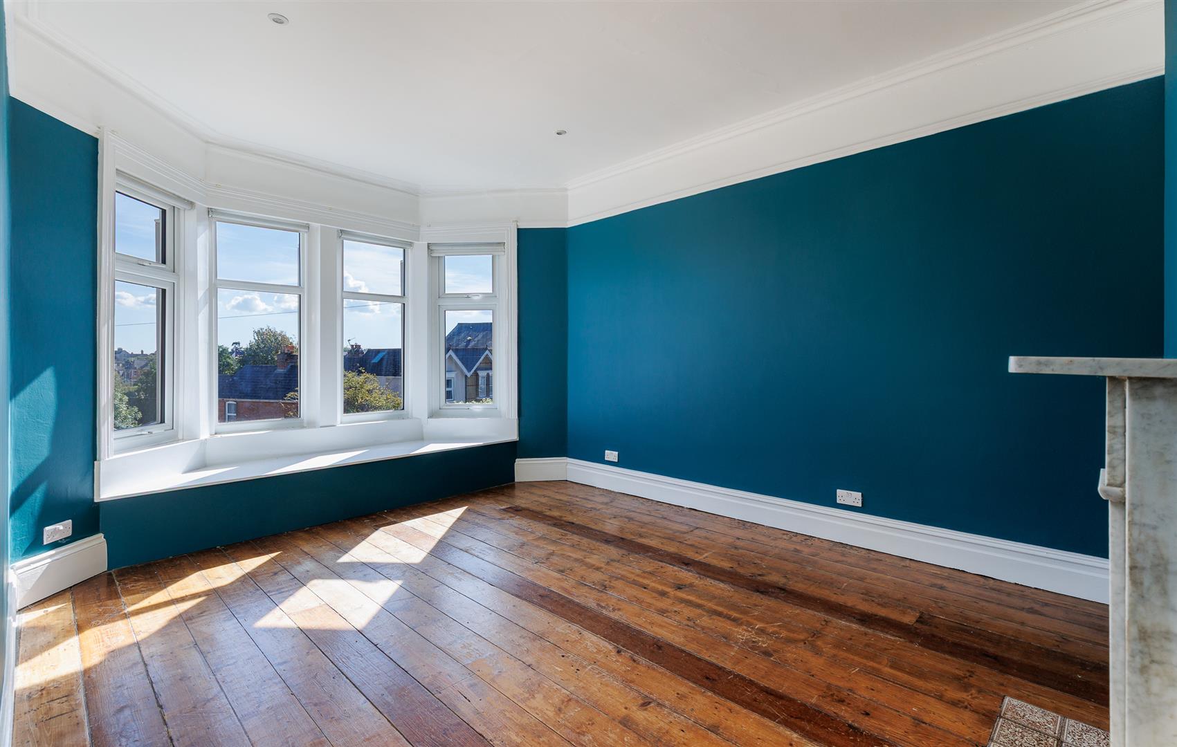 BEDROOM 3 A double bedroom with large dual aspect windows and an outlook over the garden. Fireplace (sealed) with marble surround.
