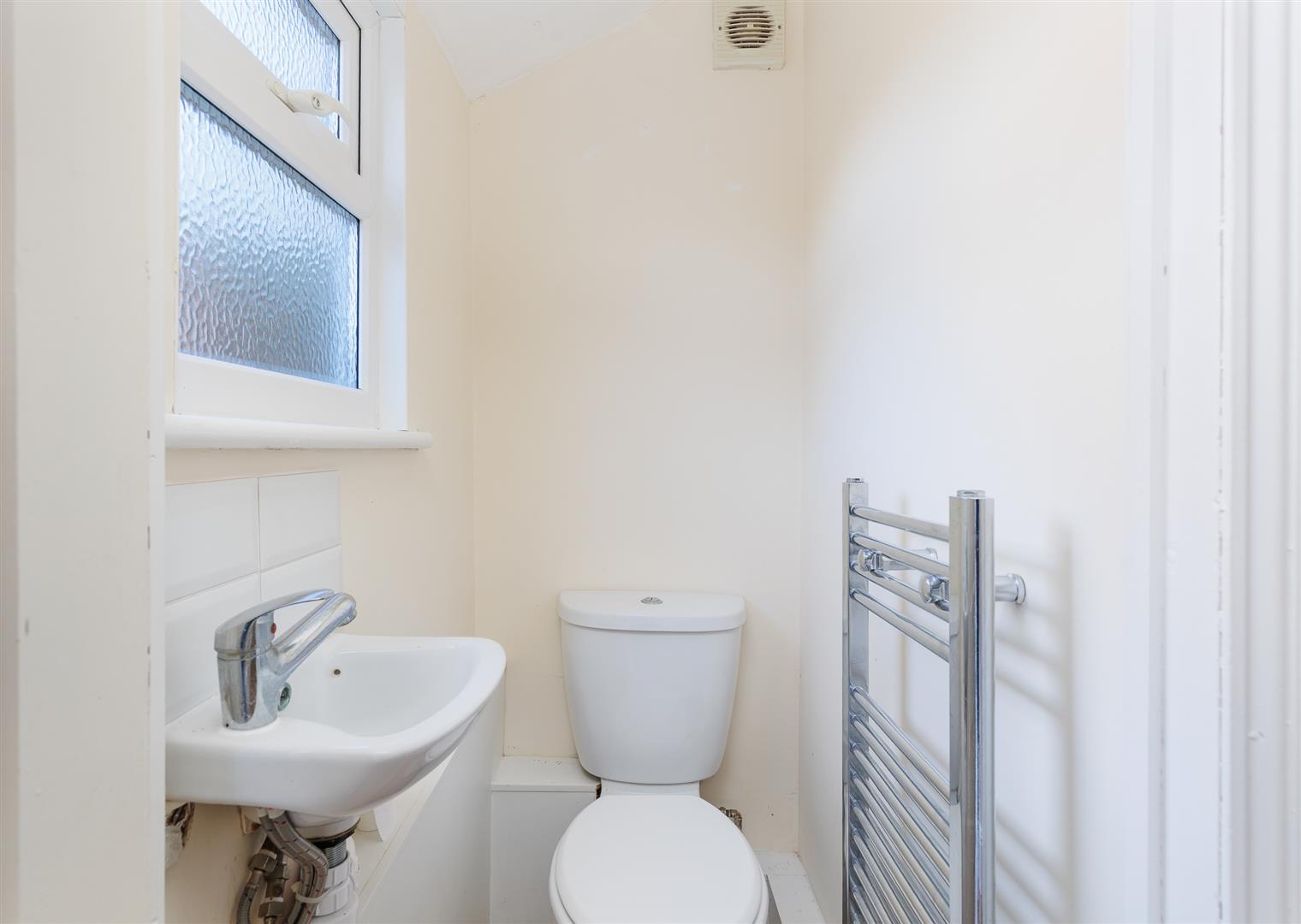 DOWNSTAIRS CLOAKROOM WC, small sink with mixer tap, heated towel rail.