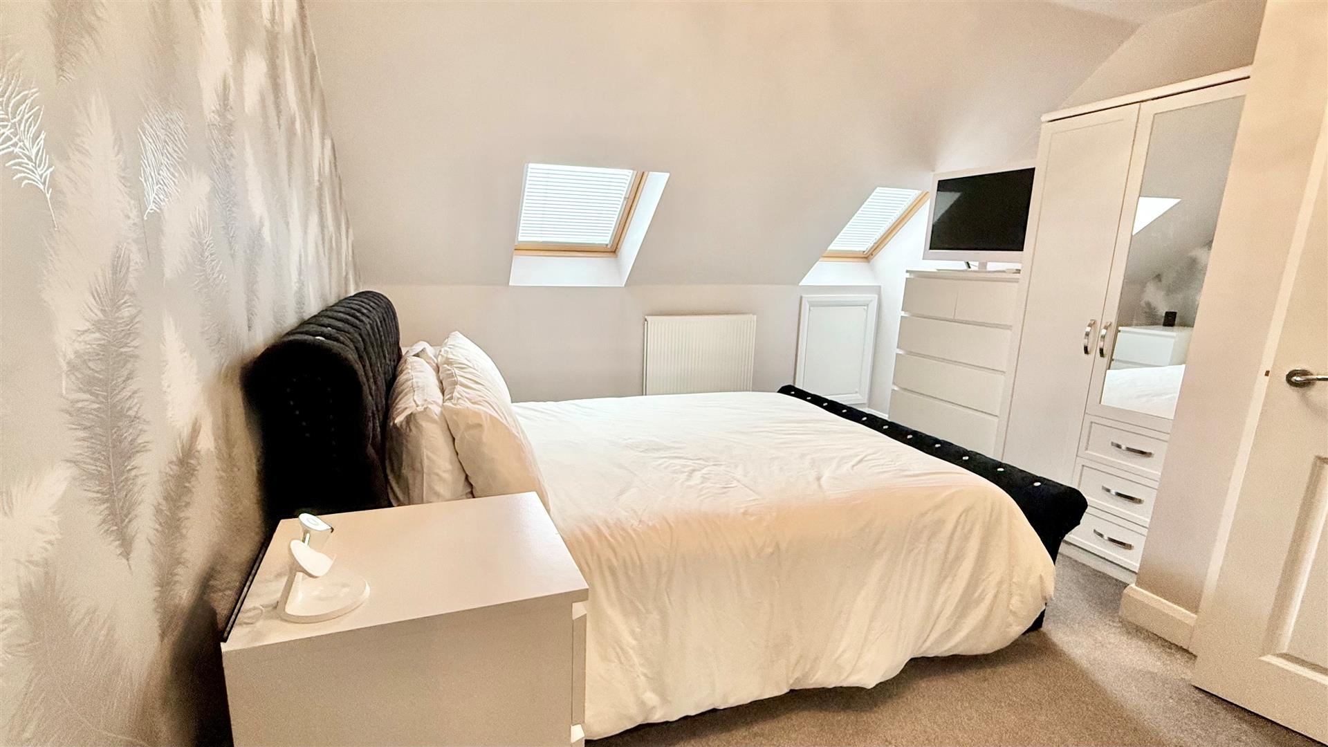 Another good sized room with two Velux windows, built-in wardrobe space and under eaves storage areas.
