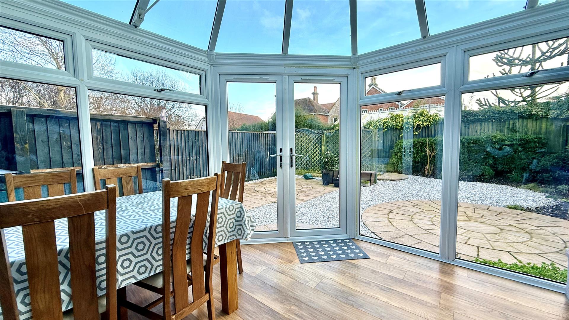 With double patio doors leading to and from conservatory and window to the rear plus useful built-in storage cupboard.