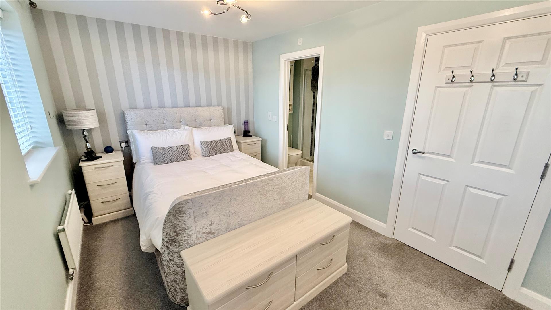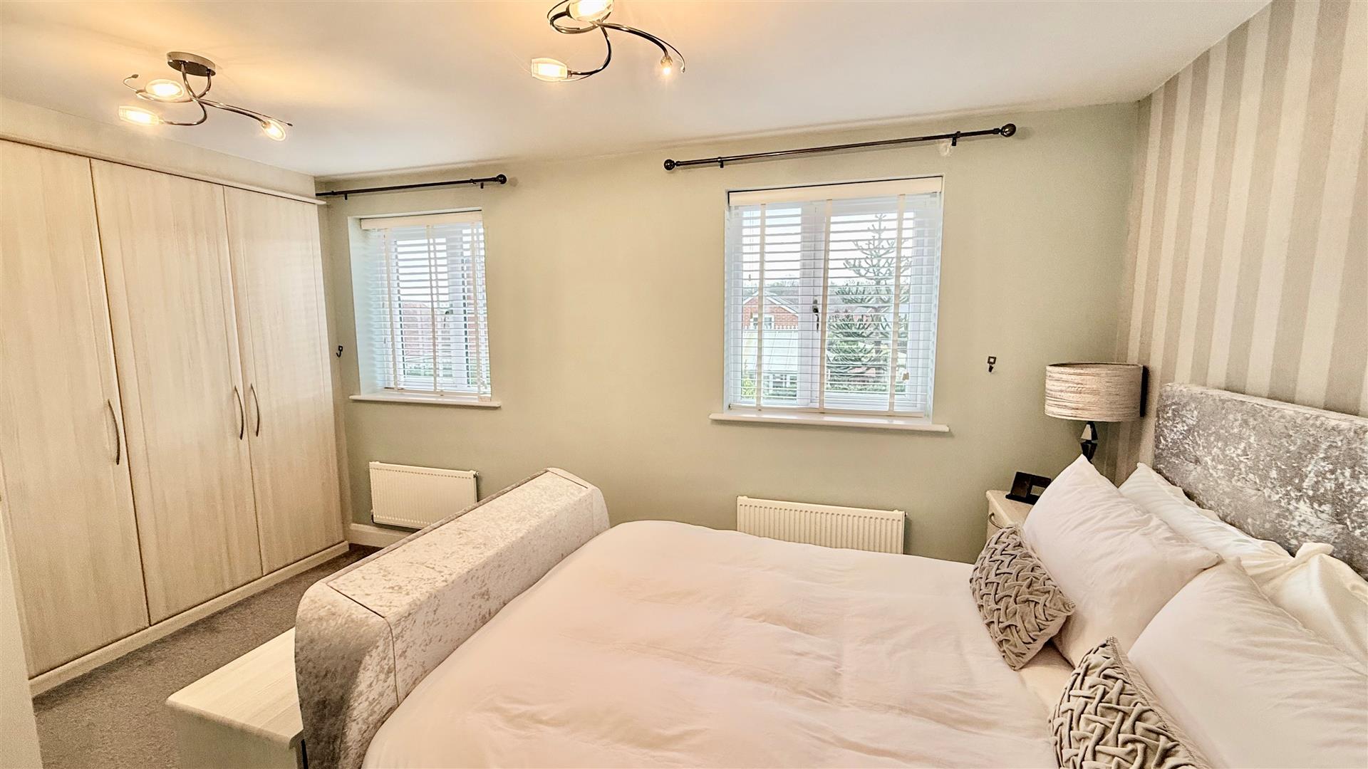 A generous double bedroom with two windows to the rear providing plenty of natural light, built-in wardrobes across one wall and door to :