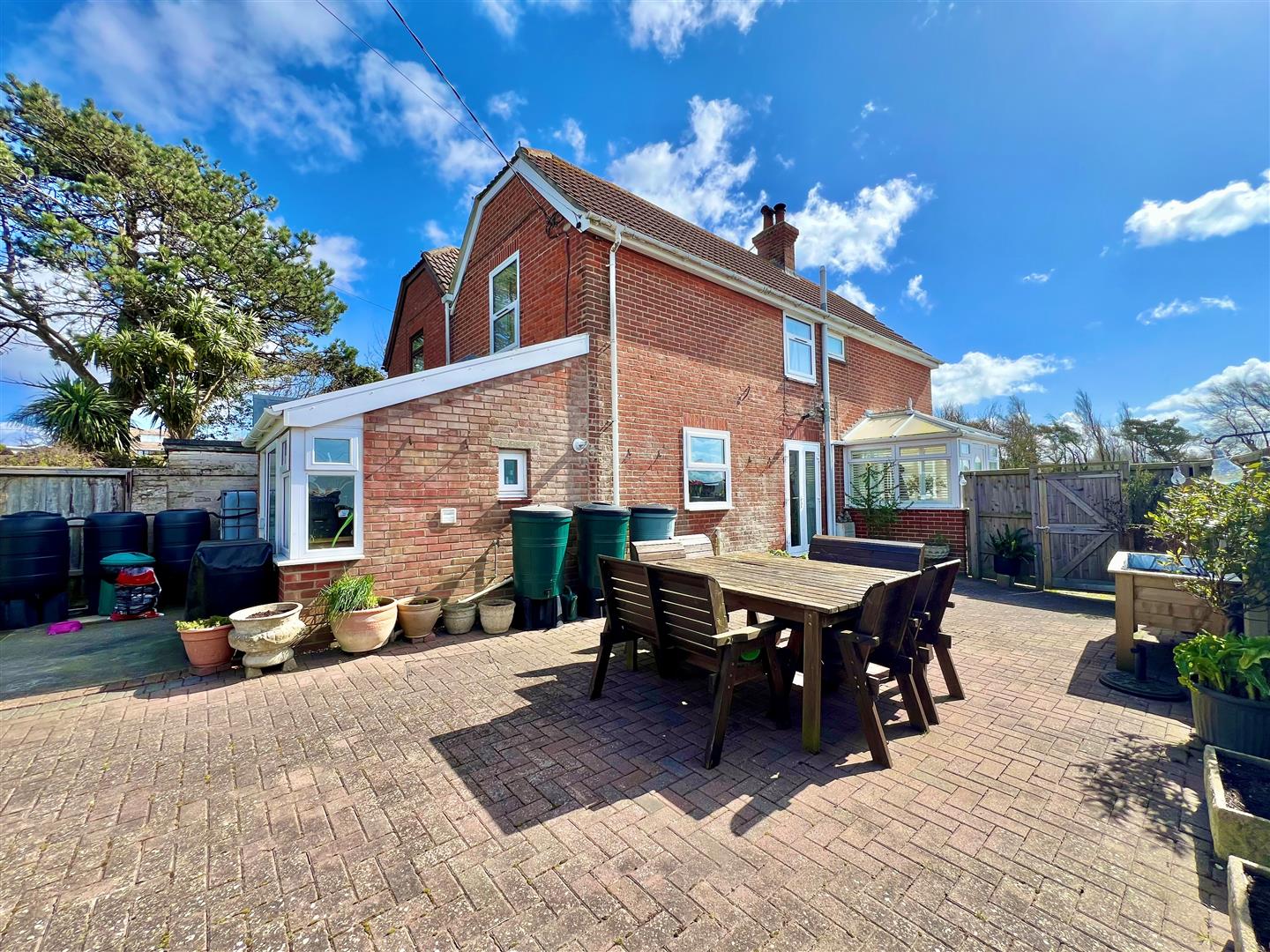 The front of the property is laid to hardstanding providing good off road parking. A gated side access leads into the enclosed side/rear garden which enjoys a sunny aspect and is well stocked with a good range of plants and shrubs. The flat lawned area provides an ideal play area and the large paved entertaining terrace is a wonderful place to sit and relax on those sunny days. At the end of the garden is a greenhouse for those keen gardeners together with a good sized timber garden store with an integrated log store to one side.