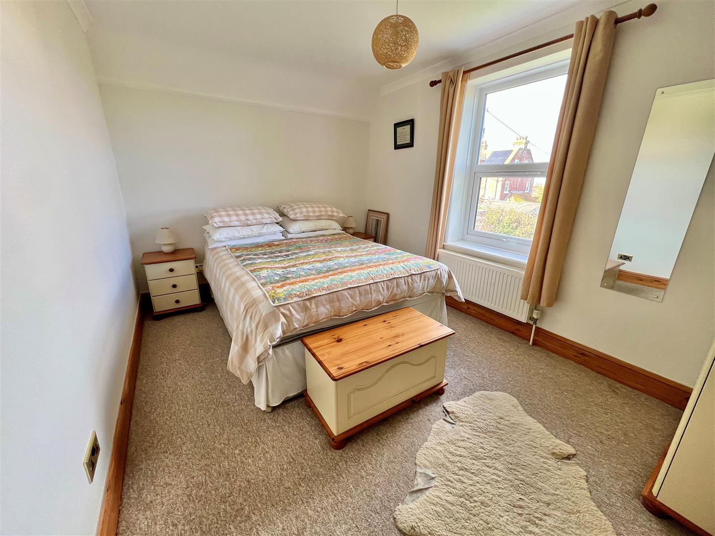 Another double bedroom to the rear with a glimpse through to the sea and mainland coastline.