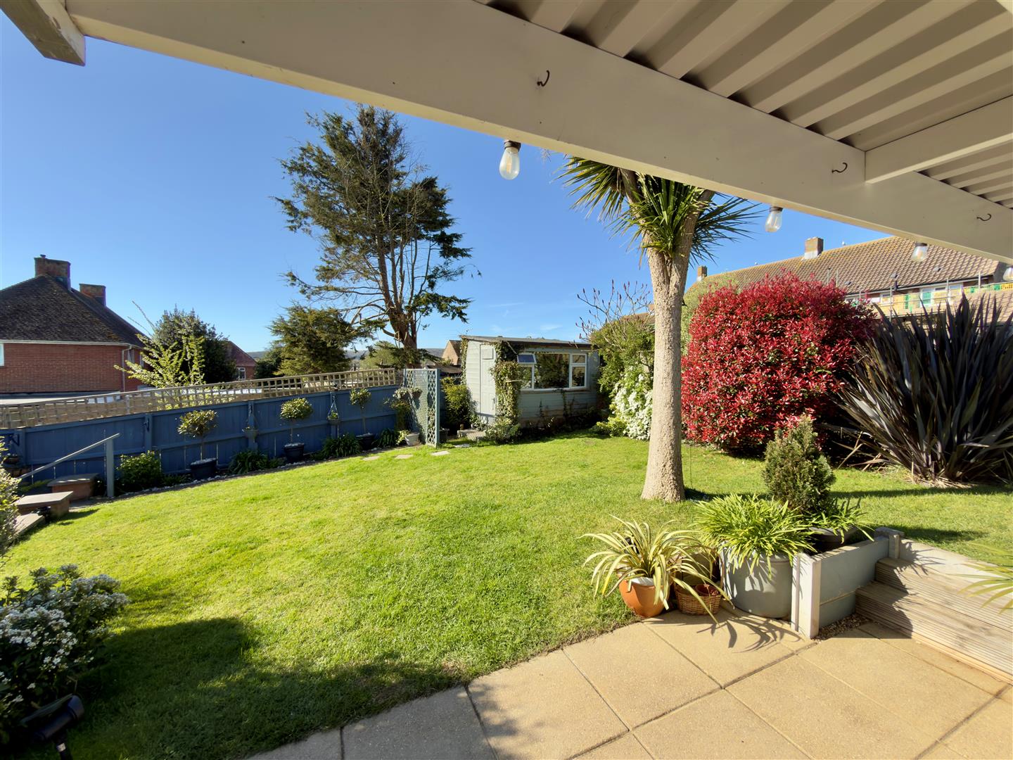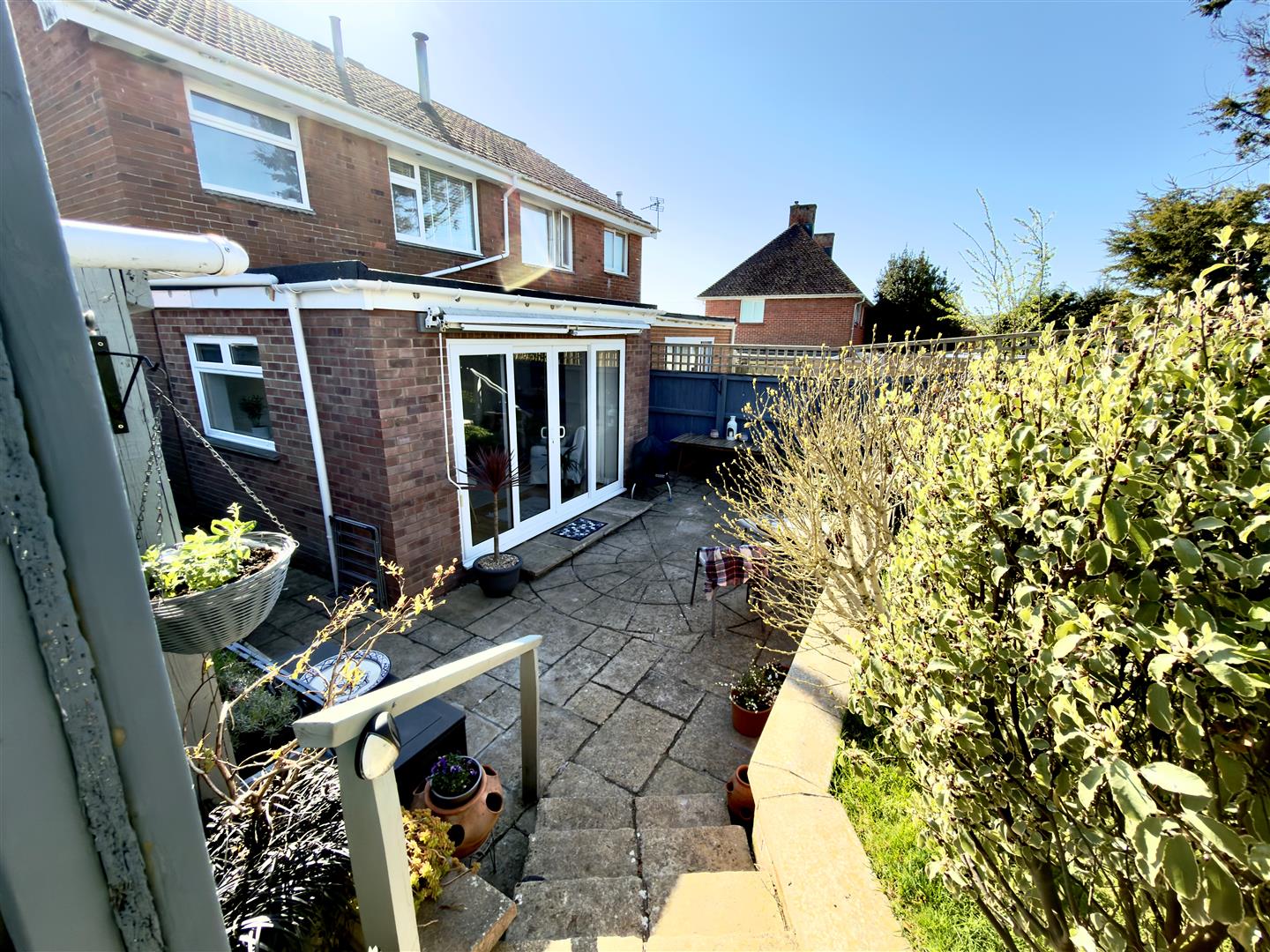 To the front of the house there is off-road parking for two-three vehicles on concrete hard-standing with lawned area and some mature shrubs and small tree. There is pedestrian access down the side which is partly covered and leads to main entrance ad on into the rear gardens.