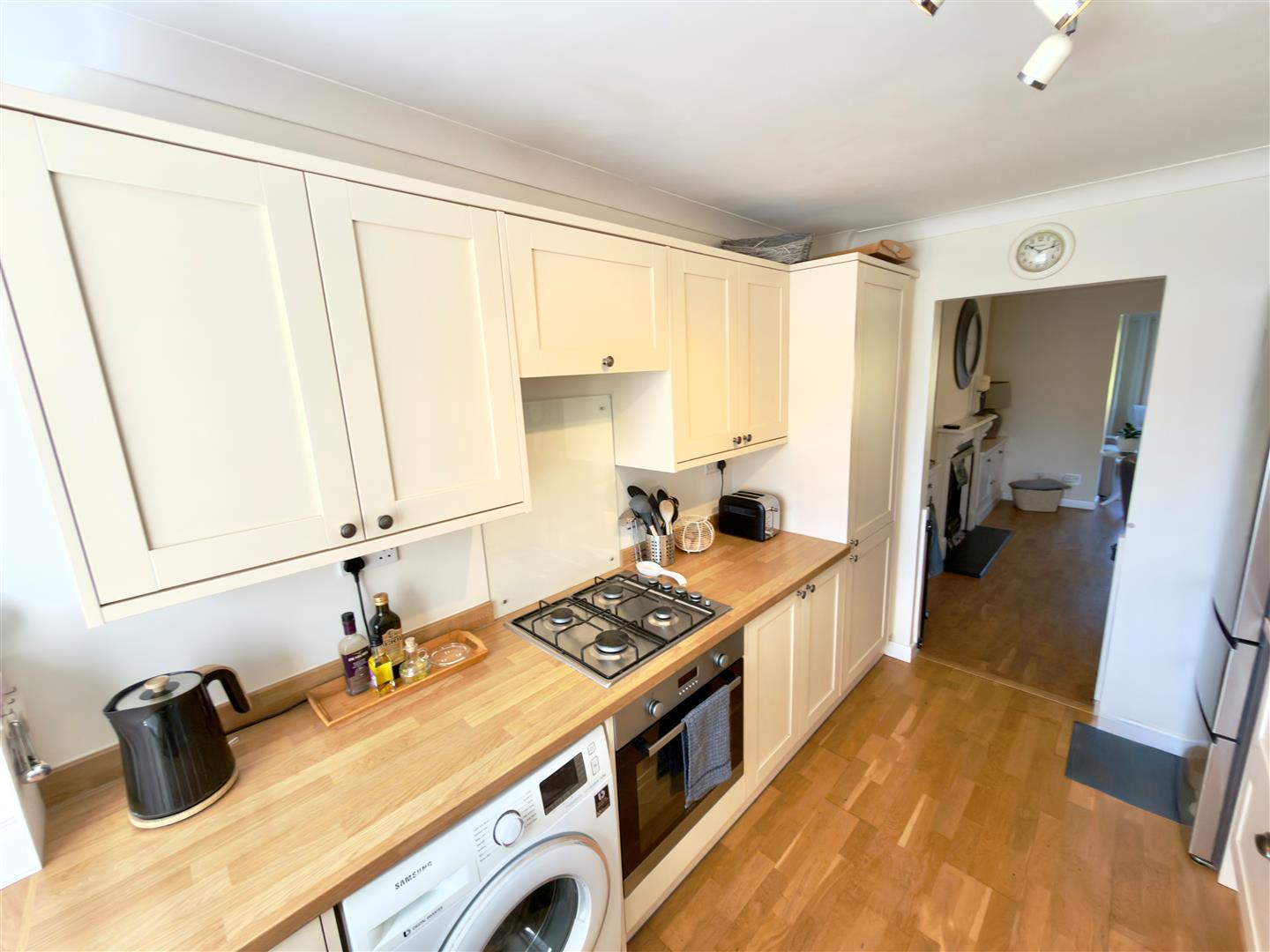 A well laid out kitchen with a good mix of floor and wall mounted units and ample work surfaces to include an inset sink and drainer. There is a gas hob with oven/grill under and an extractor over, integral fridge & freezer plus space and plumbing for a washing machine. Window to front aspect.