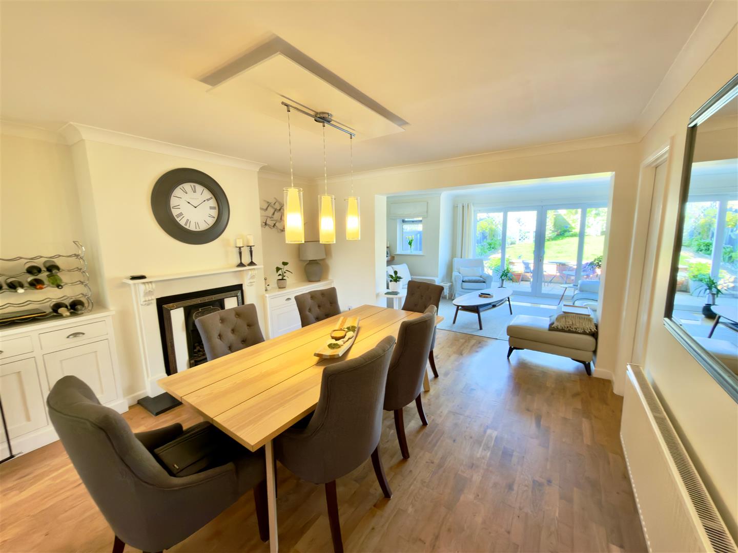 Formally the original lounge/diner, this space now offers plenty of room for a large family table and chairs and has a feature fireplace with built-in storage on either side, a door to stairs for accessing first floor and open to the rear extension created as a living room space.