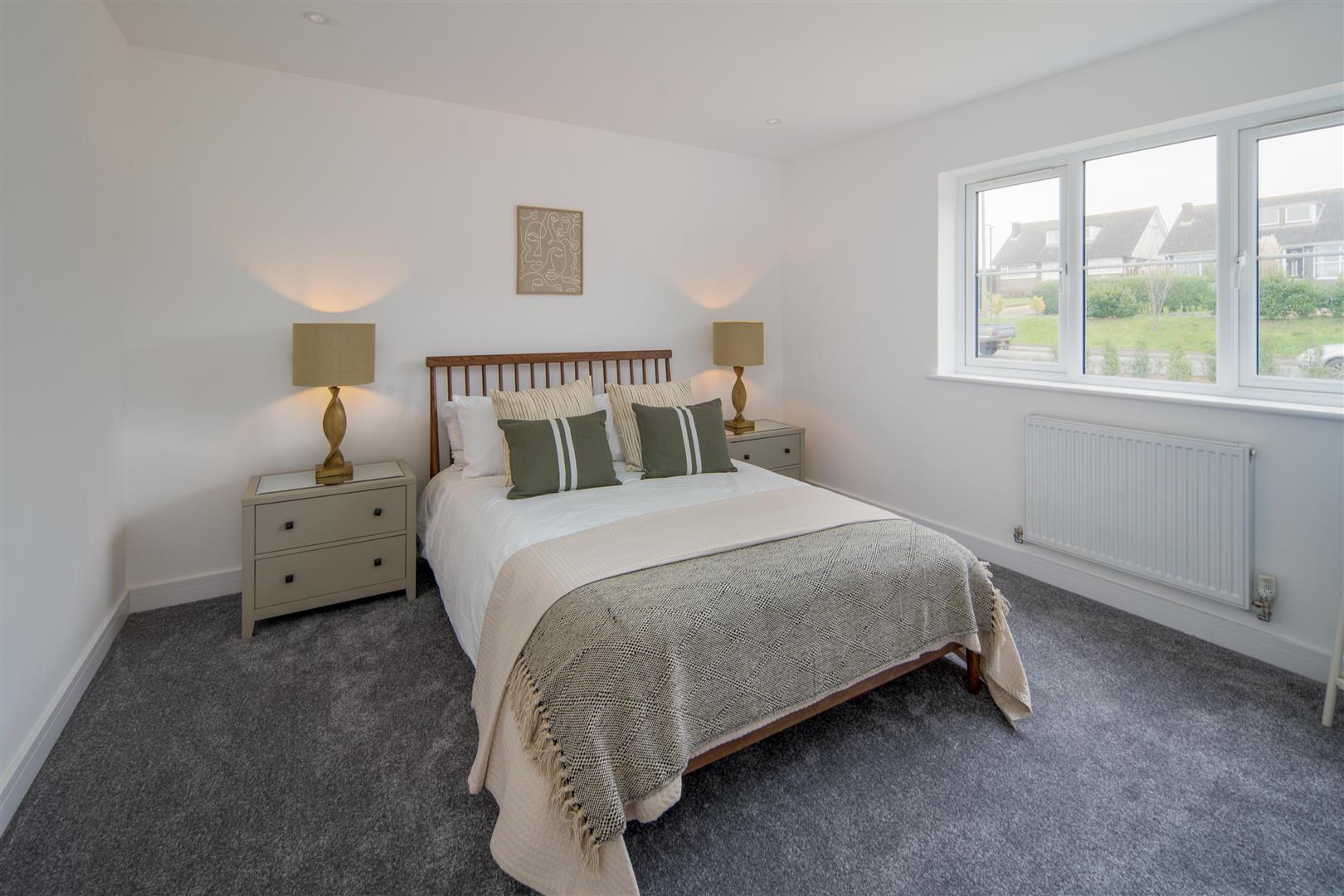 Outside – Set back from the road behind a large, gravelled driveway and lawned garden with gated access to the side, which leads to the rear garden with westerly aspect. Laid to lawn with close board fencing enclosing three sides with a substantial elevated deck with glazed balustrade.