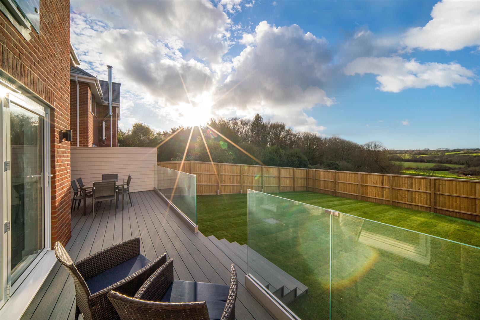 Set back from the road in in the sought after village of Nettlestone, this new home enjoys far-reaching views over fields and woodland to the rear. Thoughtfully designed with family living in mind, the kitchen is open plan to a dining room, creating an excellent sociable dining space with direct access to the sun terrace and garden, and the bedroom accommodation generous with four double bedrooms and two bathrooms. Landscaped gardens are enclosed at the rear with a raised deck with glazed balustrades, ideal outdoor dining and entertaining. Planted front gardens border a gravelled access drive and parking area.