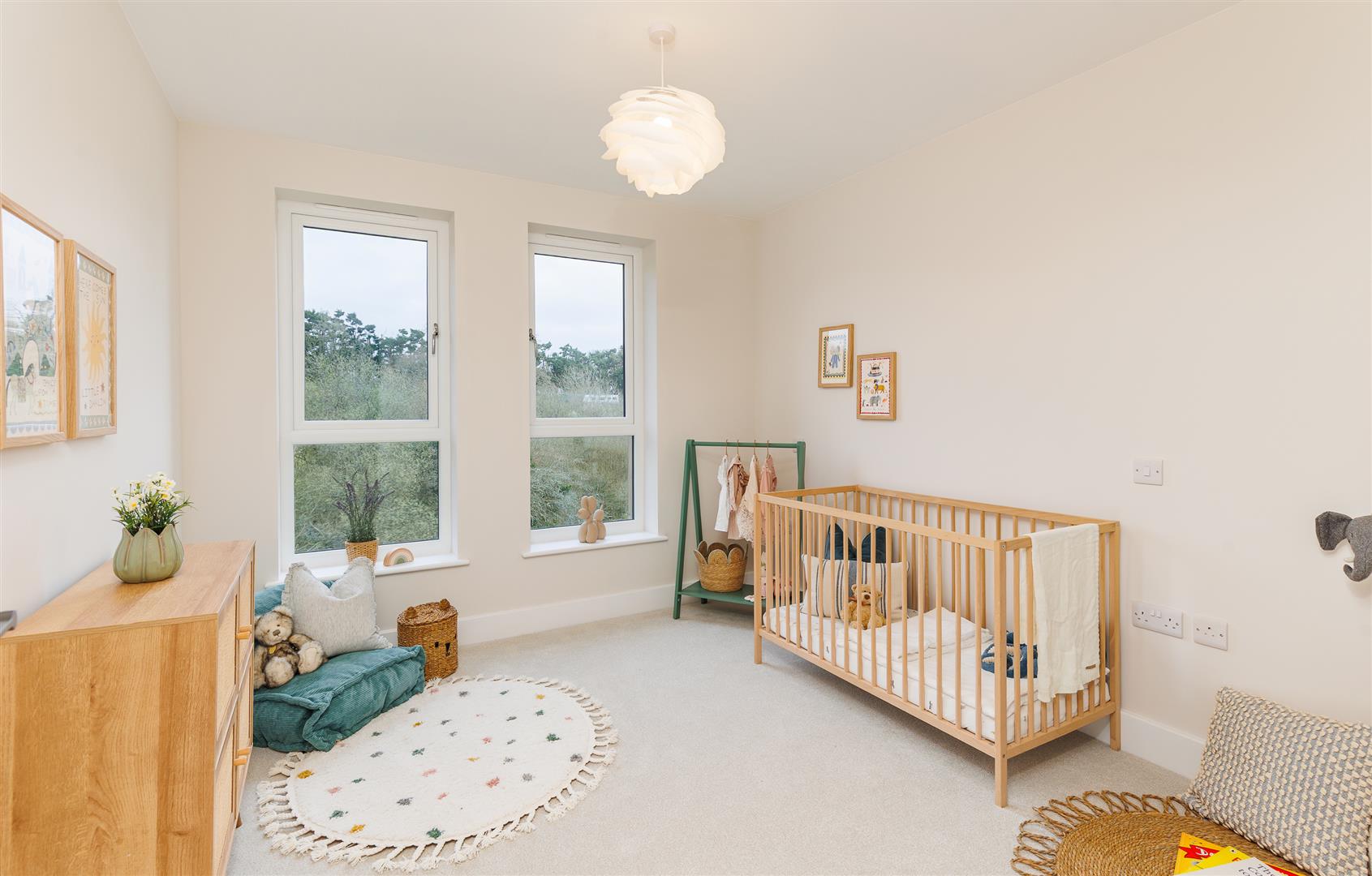 BEDROOM 2 – Double bedroom overlooking the front garden and communal wildflower garden. Space for free standing wardrobes.