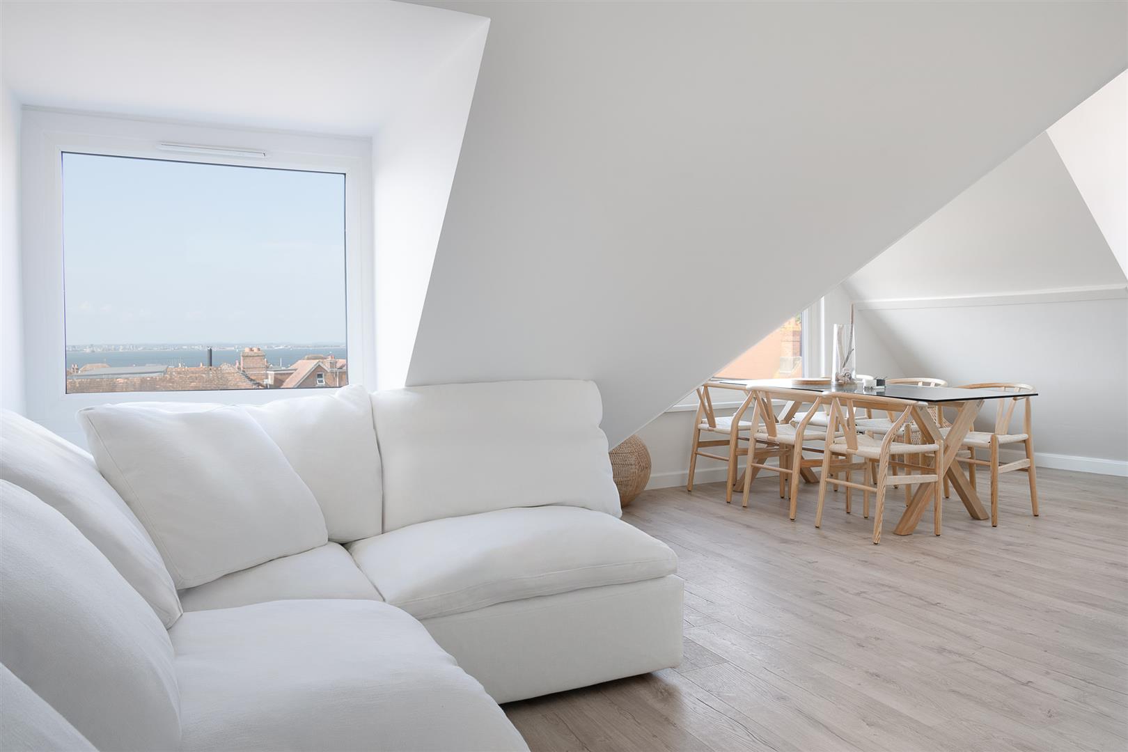 The Sea Loft is a meticulously refurbished loft apartment within a beautiful Edwardian building set in the heart of Seaview. Occupying the roof space, it benefits from a particularly light and spacious open-plan living area, two comfortable double bedrooms, and a luxurious bathroom with a walk-in shower. The main living space combines the kitchen and dining area, boasting a range of excellent windows that offer far-reaching sea views across The Solent to Portsmouth.