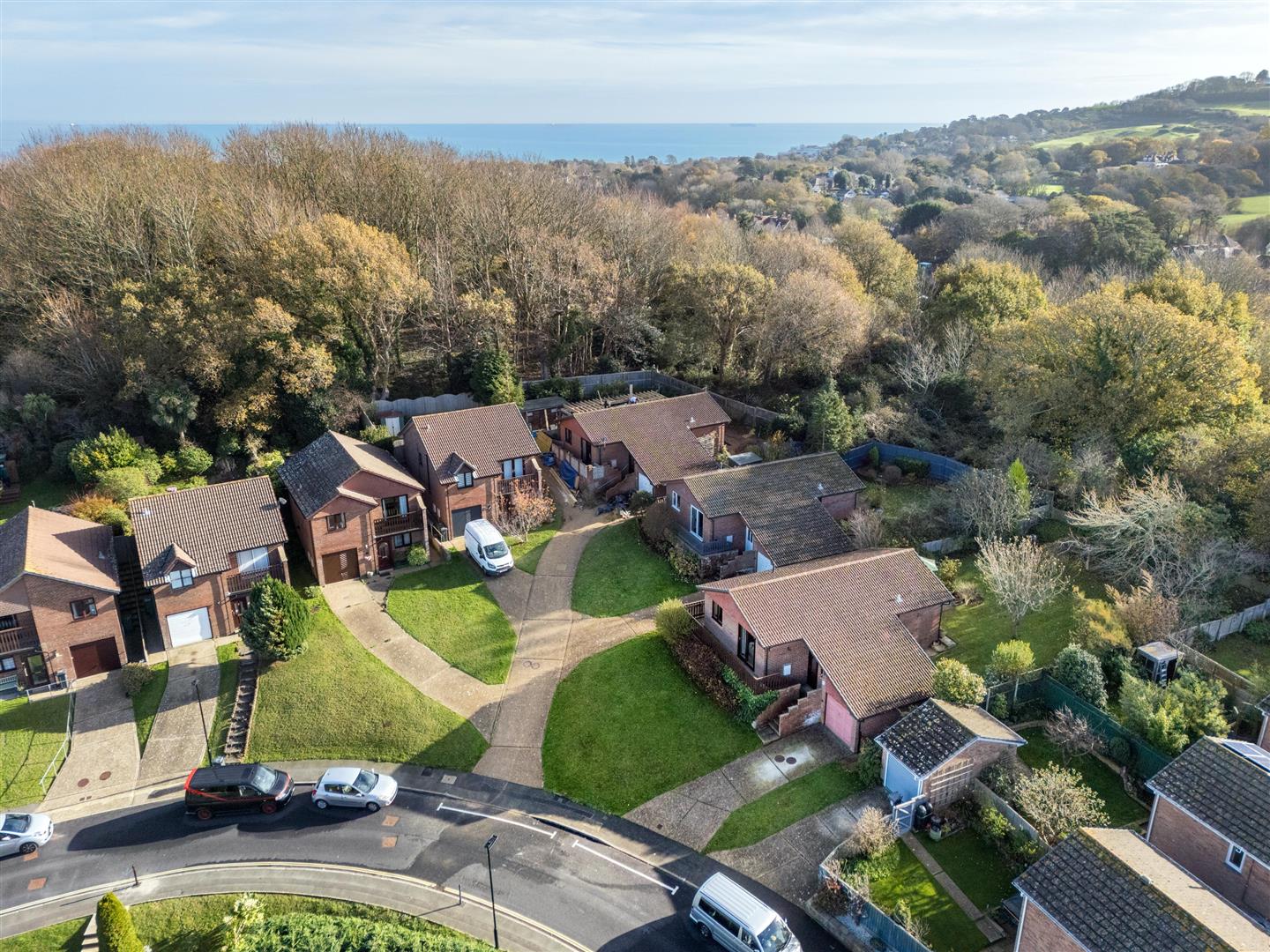 Occupying a large plot and elevated to achieve glorious views, the bungalow is set back from the road with a driveway providing parking for two to three cars in front of an attached garage, which features an up-and-over door and roof space storage.
