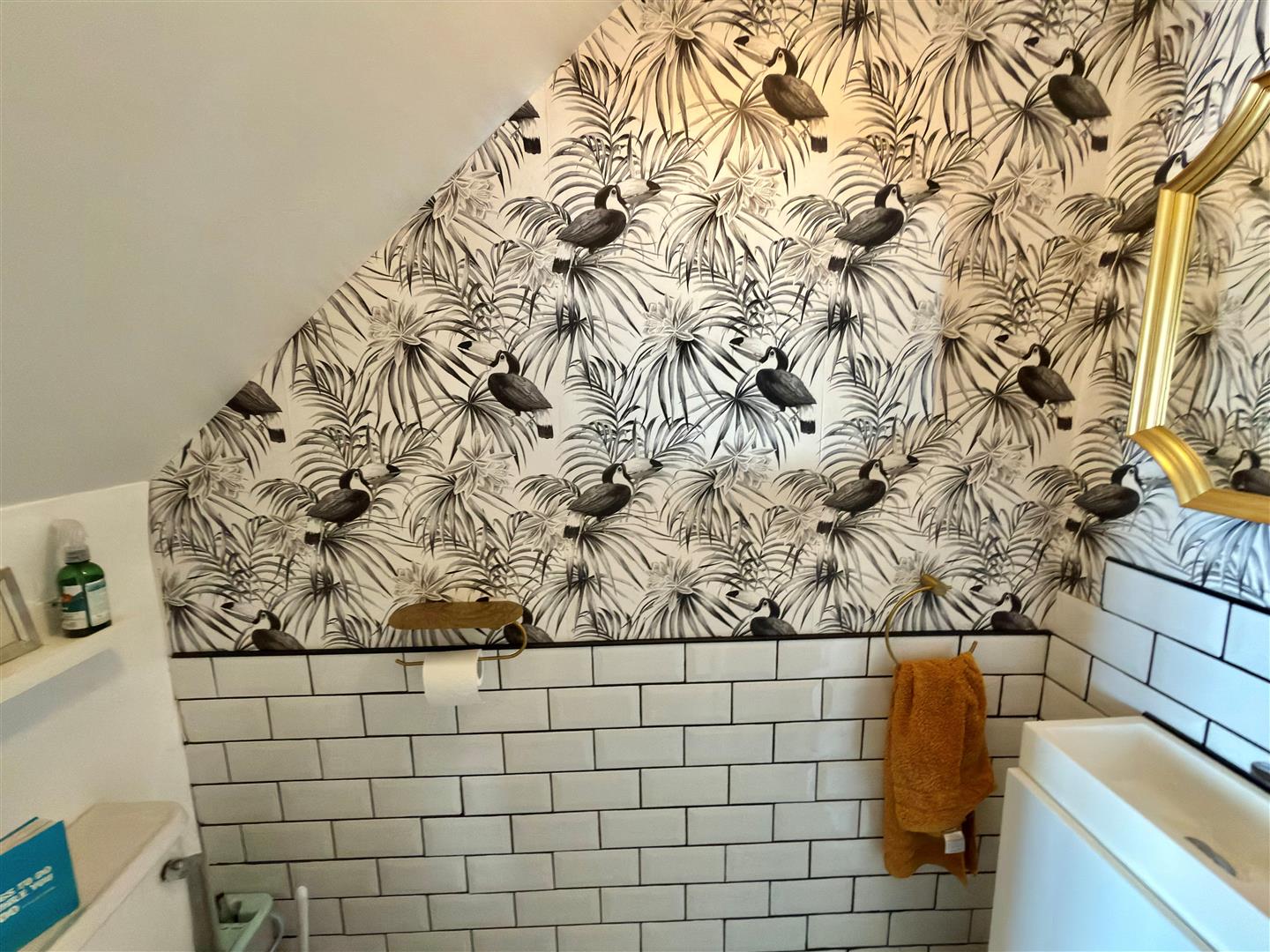 Accessed from front garden with stairs to first floor ,built-in storage cupboard and cloakroom with WC and wash hand basin. Access to