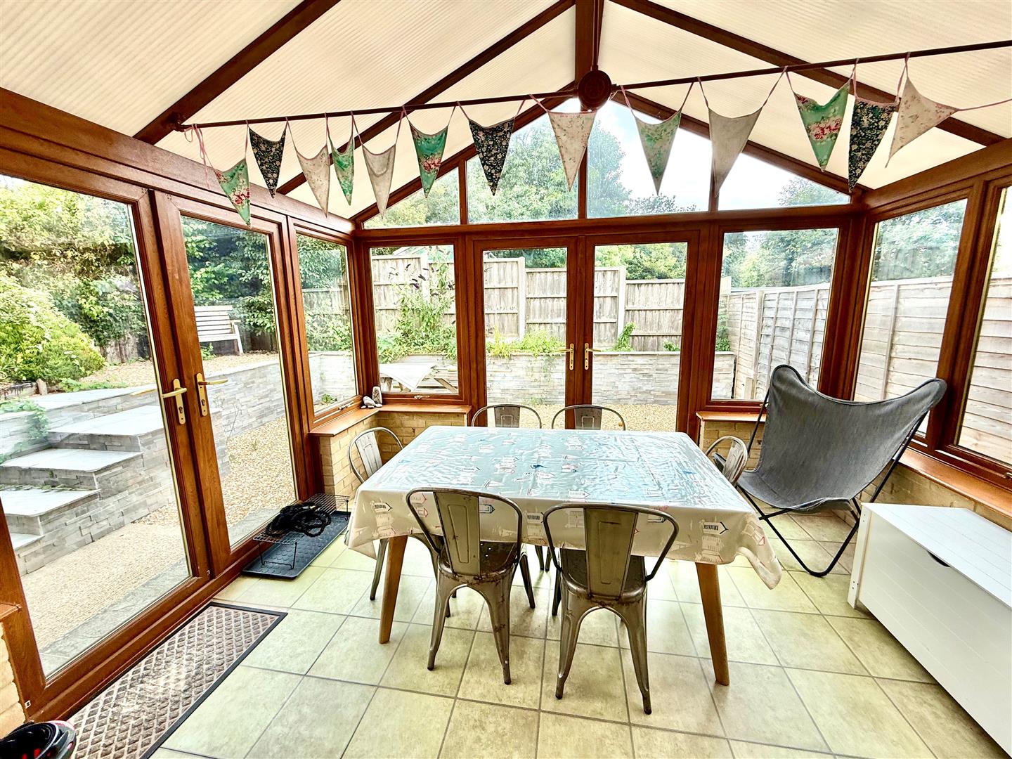 A really bright and airy space with, windows to three sides and two sets of patio doors with one pair to the side and one pair to the rear,.