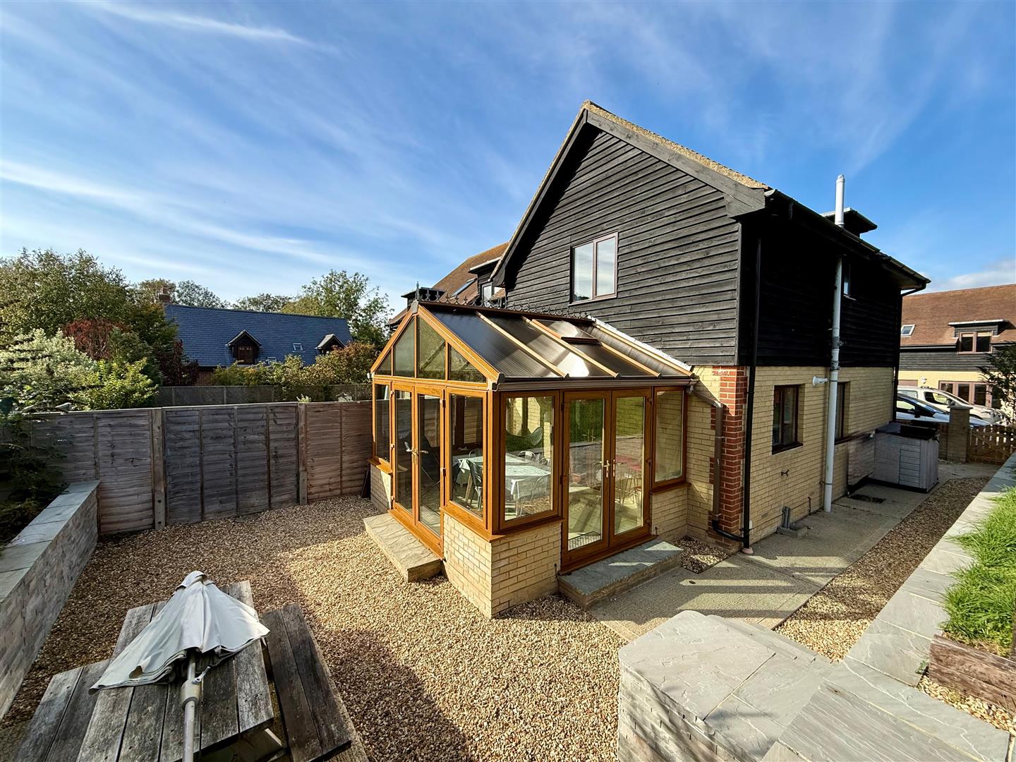 To the front there is a low walled courtyard style garden which has gated access to and from the parking area.. Down the side there is room for storage and access to rear garden and conservatory plus main patio area and further raised seating area eating .