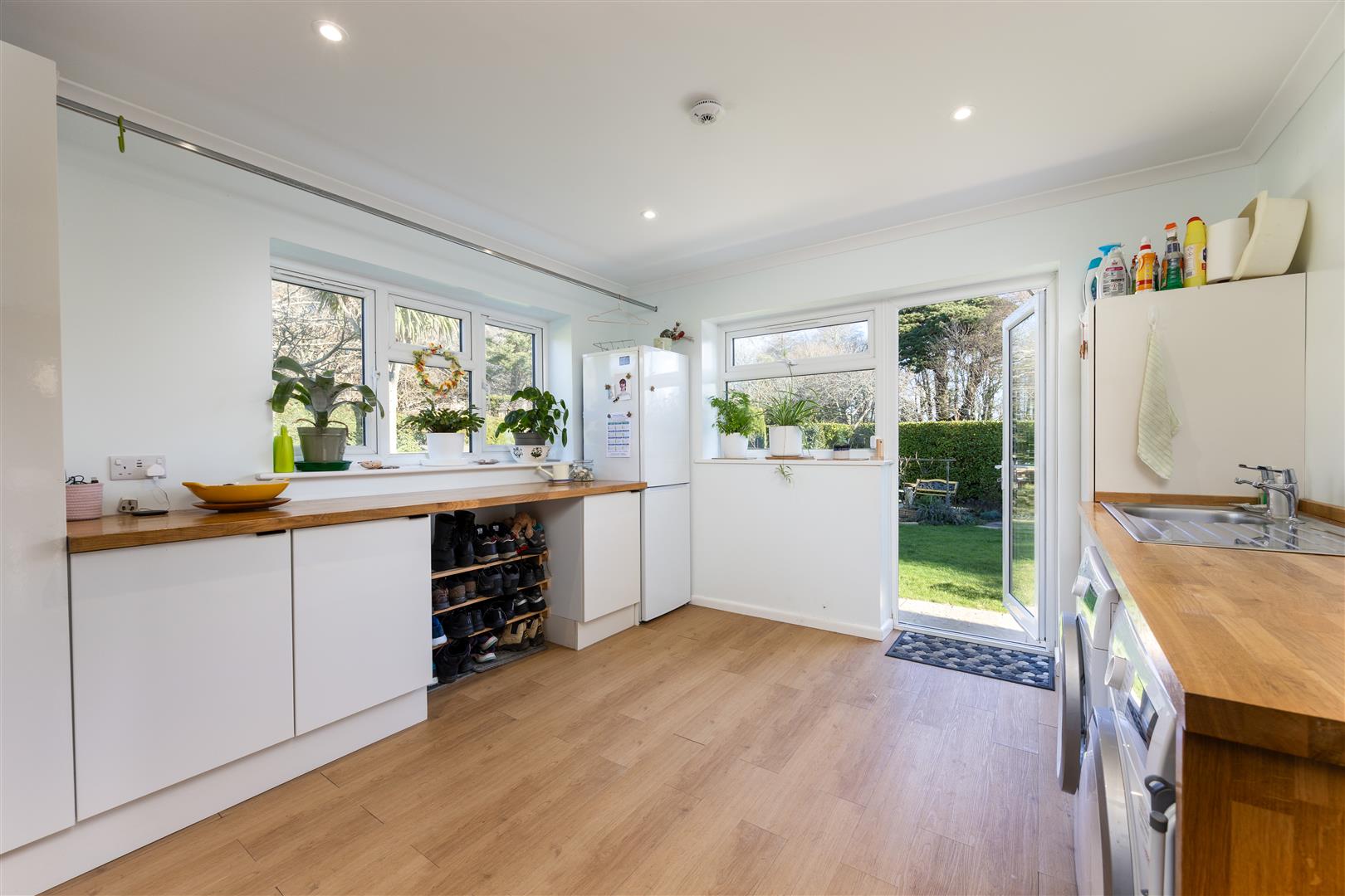 This good-sized property benefits from 3/4 bedrooms. There is a large ensuite with walk in power shower with his and her sinks set in a solid oak worktop. The living room has a woodburning stove and a wooded mantel. There is a snug, a kitchen with NEFF appliances, a large utility room with solid worktops and a garden room/dining area with great aspects to the front and rear. Near Bedrooms 2 and 3 there is a separate family bathroom. It has been neutrally refurbished to a high standard and offers a new owner a ‘turnkey’ opportunity to live in an excellent position, a short walk from the beach as well as the historic harbour town of Yarmouth. Around 300m from the property there is access to miles of stunning coastal footpaths with Fort Victoria Country Park with woodland walks, close by. There is a bus stop on Halletts Shute, again, a short walk from the property.