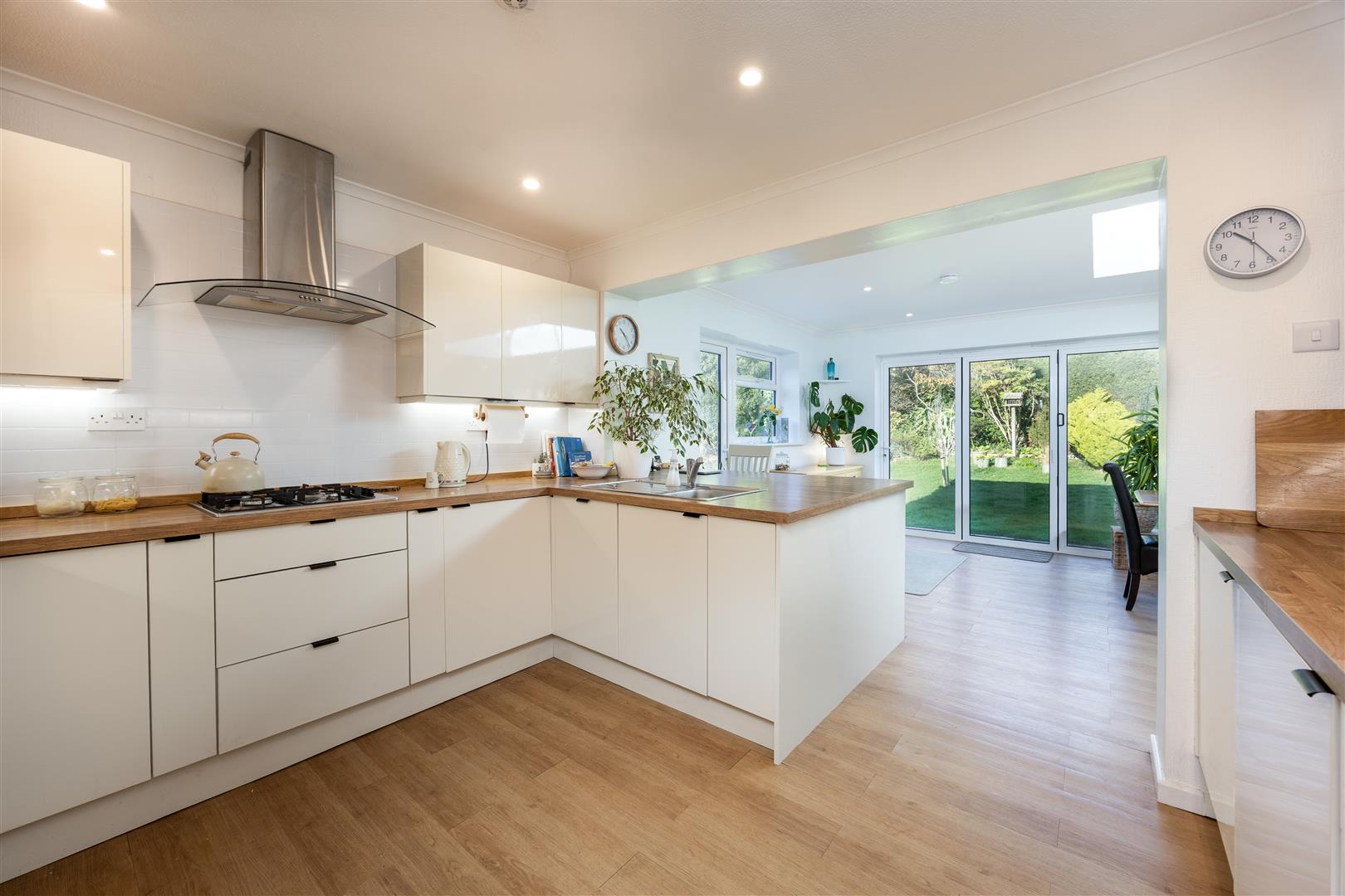 Woodlands occupies one of the best locations in Westhill with a wonderful private garden to the rear and sitting independently of others. This immaculate property was the subject of a recent and thorough refurbishment which included a large kitchen/diner extension with roof atrium skylight, off the rear and a substantial brick-built workshop adjoining the northern end of the garage. The property is surrounded on two sides by protected picturesque wildflower meadows (SSSI, with rare orchids)