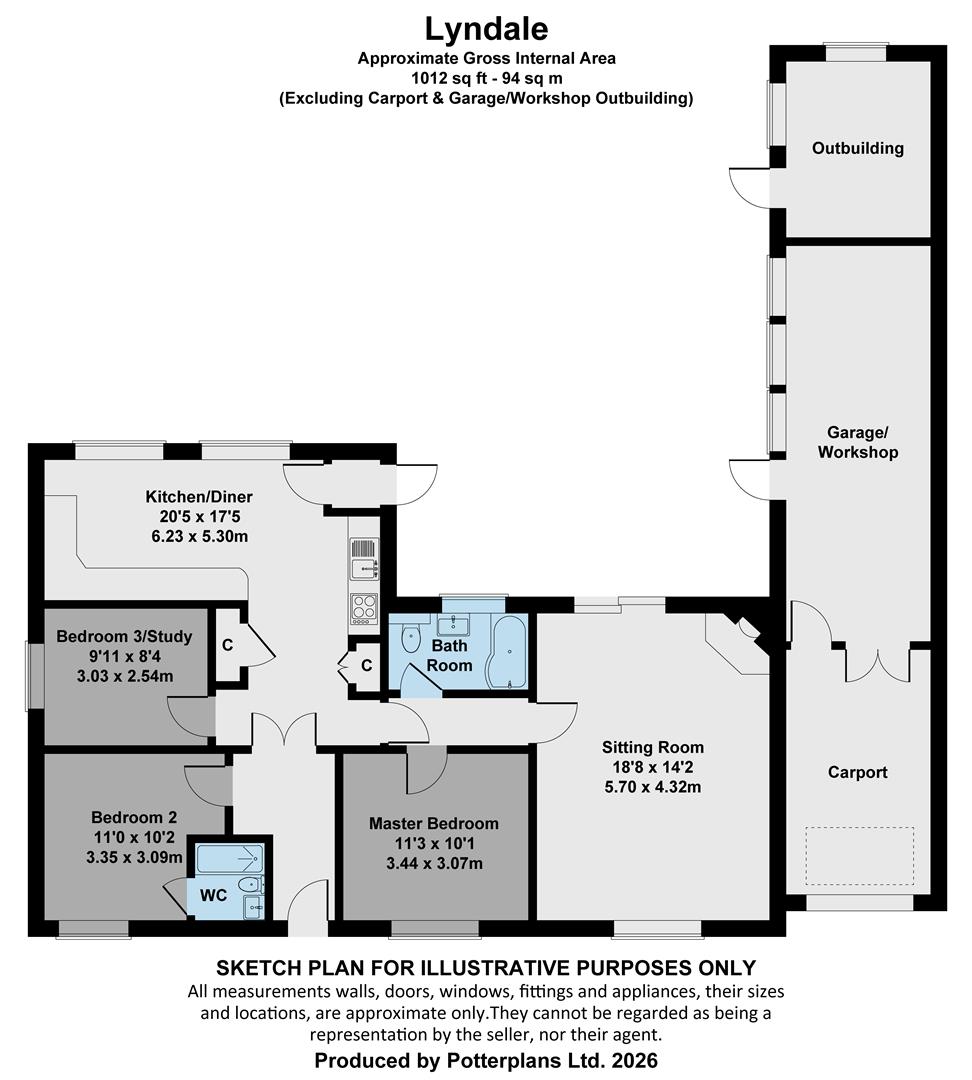 A fabulous double aspect, 18′ sitting room is fitted with a modern high quality wood burning stove in one corner. The sitting room has sliding doors opening onto an attractive terrace and the garden beyond. The well-appointed modern kitchen/diner offers fantastic views of the beautiful and well- maintained garden. There is an excellent range of wall and base units in the double aspect kitchen. The property benefits from double glazing, oil fired central heating, garage/workshop, carport, wood store and greenhouse.